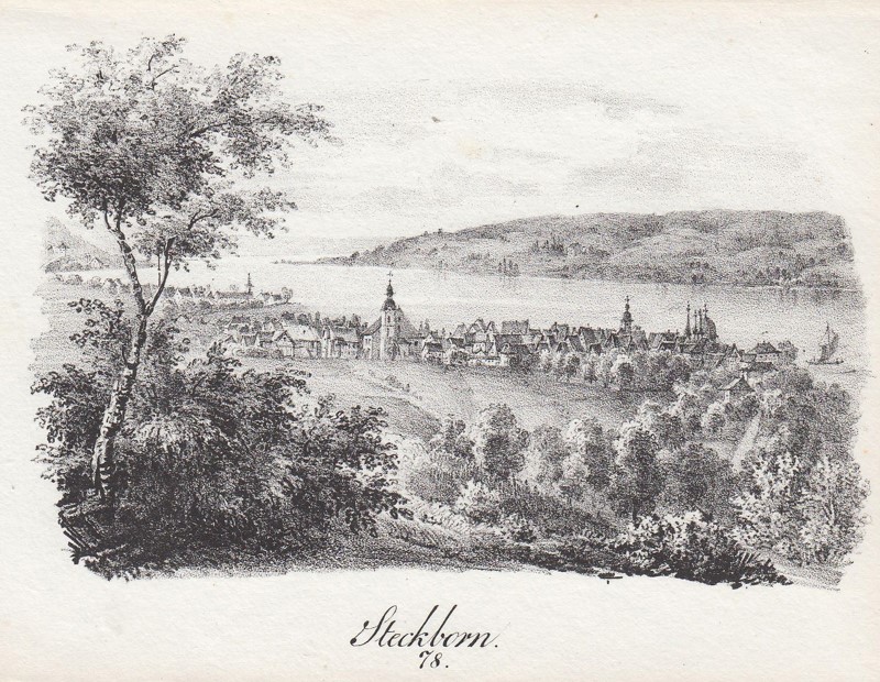 STECKBORN: overall view, in the Hgr. Lake Zell 'Steckborn 78'. lithograph b. Pecht in Constanz, 1832, 8 x 12 Article number: 84327