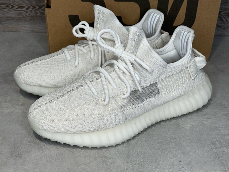 A PASS AS DEADSTOCK pair of the Adidas Yeezy Boost 350 V2 in the BONE WHITE colorway. (HQ6316.) This pair is MEN’s size 7.5 US.