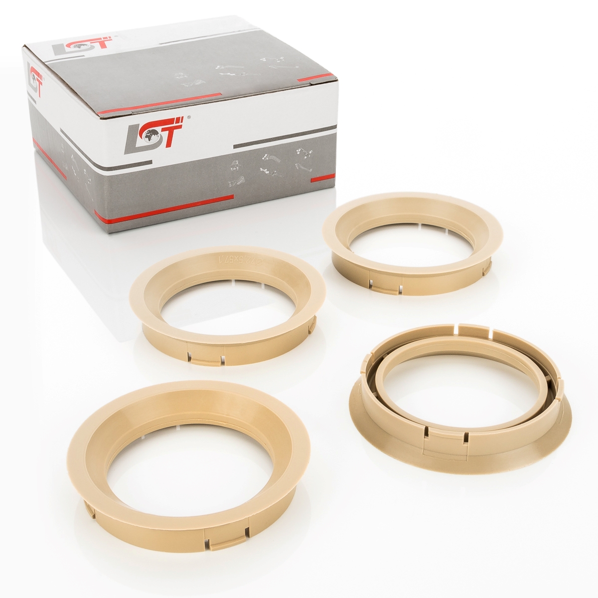 Mit diesen Zentrierringen können Sie Felgen mit einer Nabenbohrung Ø 72,5 mm auf ein Fahrzeug mit dem Nabendurchmesser Ø 57,1 mm montieren.