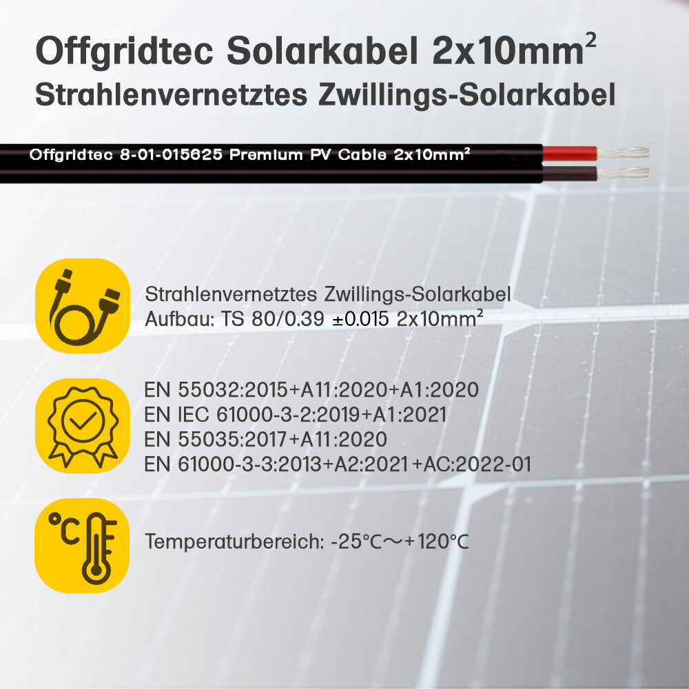Offgridtec Solarkabel 2x10mm² - Strahlenvernetztes Zwillings-Solarkabel