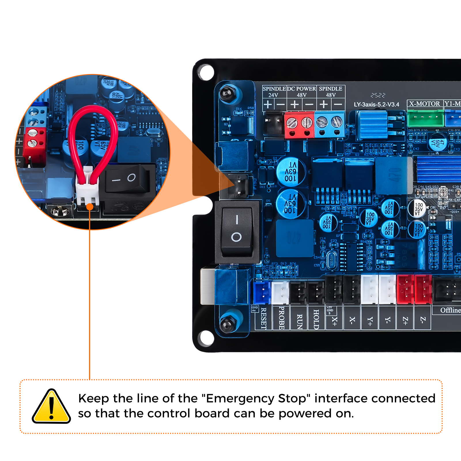 5. The 48VDC interface cannot be connected to the switching power supply, and the voltage that can be passed through the DC seat of the control board cannot be greater than 5A.