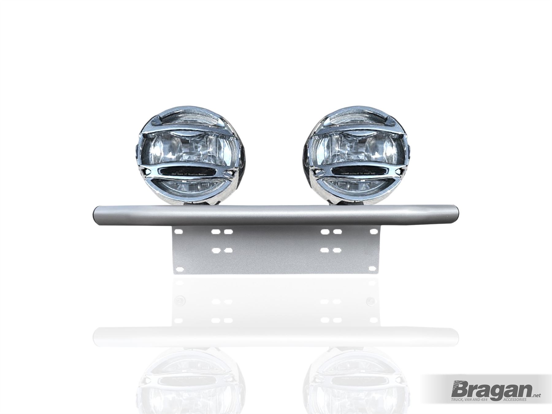 High-quality Aluminium Number Plate Light Bar + 6 inches Chrome Cased Round Spot Lights x2 for Renault Captur (2013 - 2019 models). These top-of-the-range bars are very easy on the eye and will have your vehicle looking top spec at a fraction of the cost of the genuine items but with the same high quality.