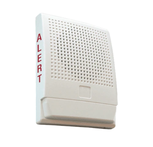 The Simplex 4906-9154 is white with red "FIRE" lettering. It is a combination speaker-strobe and notification appliance.
