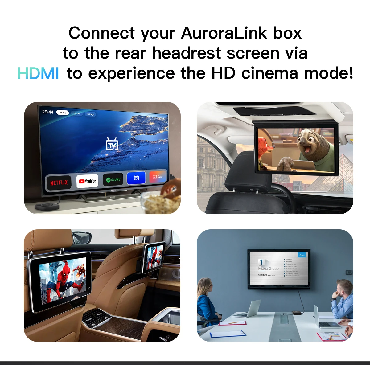 Connect your AuroraLink box the the rear headrest screen via HDMI to experience the HD cinema mode!