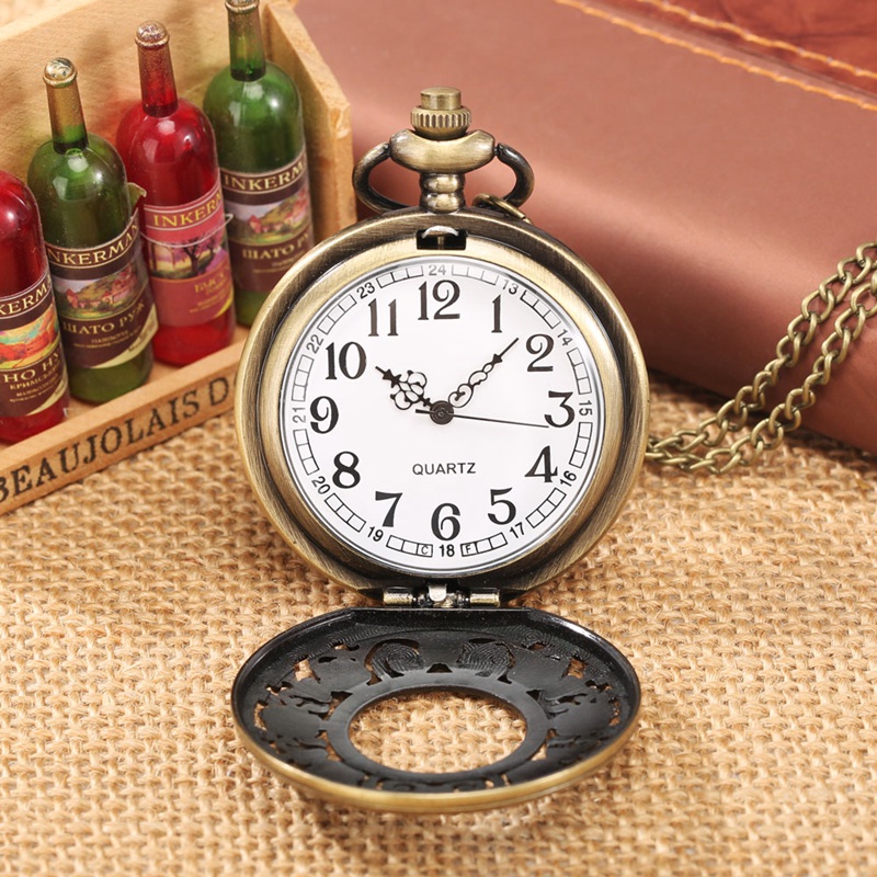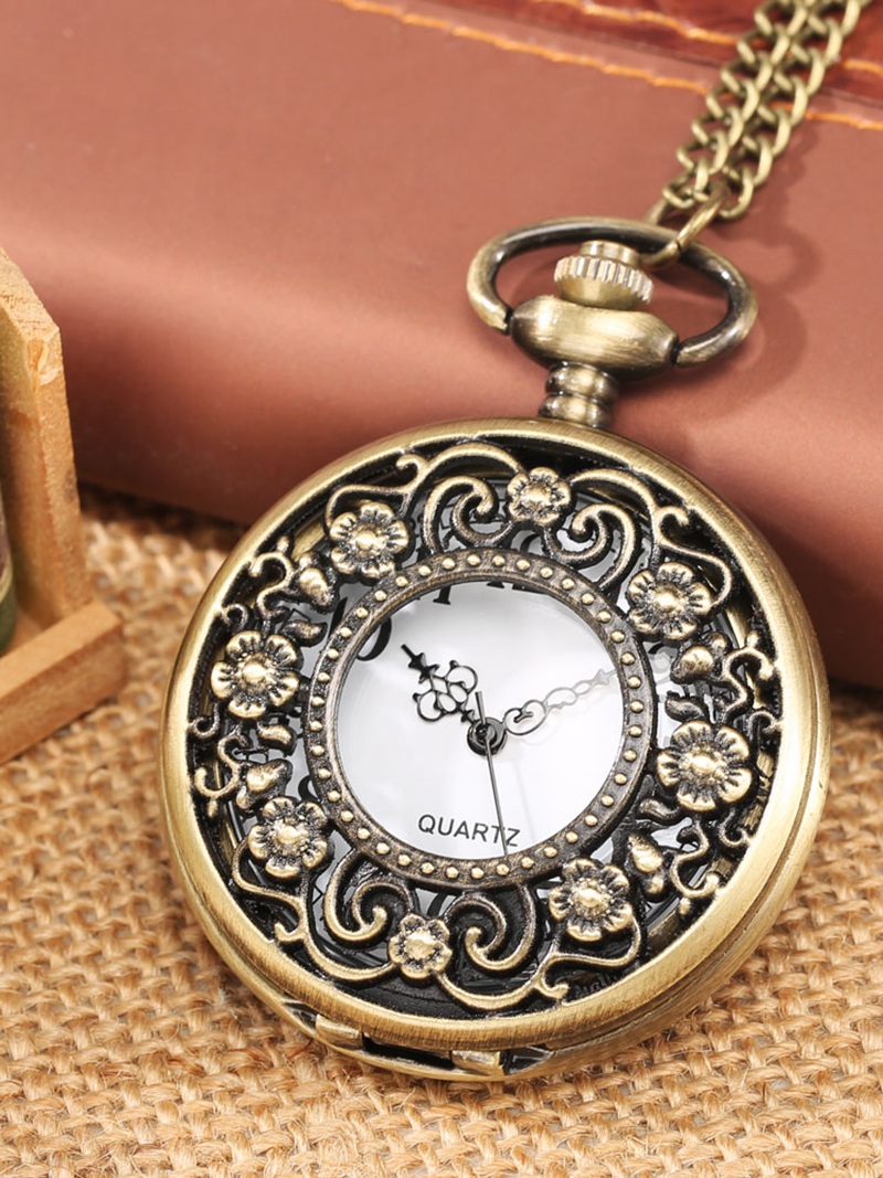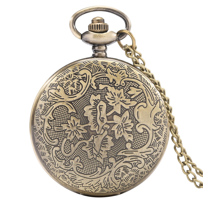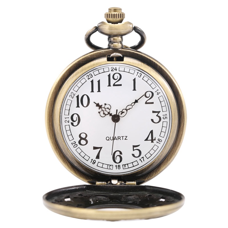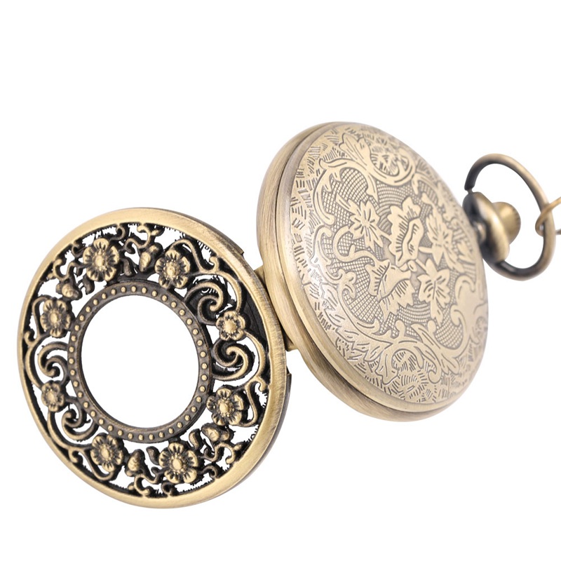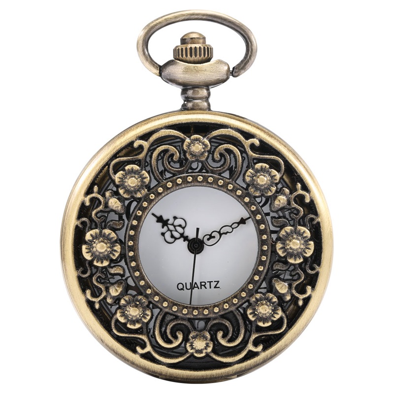 Bronze Half Hunter Hollow Flower Quartz Pocket Watch White Arabic Numerals Gifts