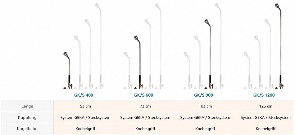 Profi Gießstab mit Auswahl an Brauseköpfe Steckverbindung und System GEKA