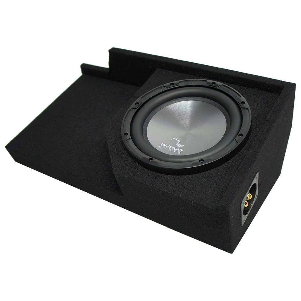 - Enclosure installs on Driver side under rear seat down firing
