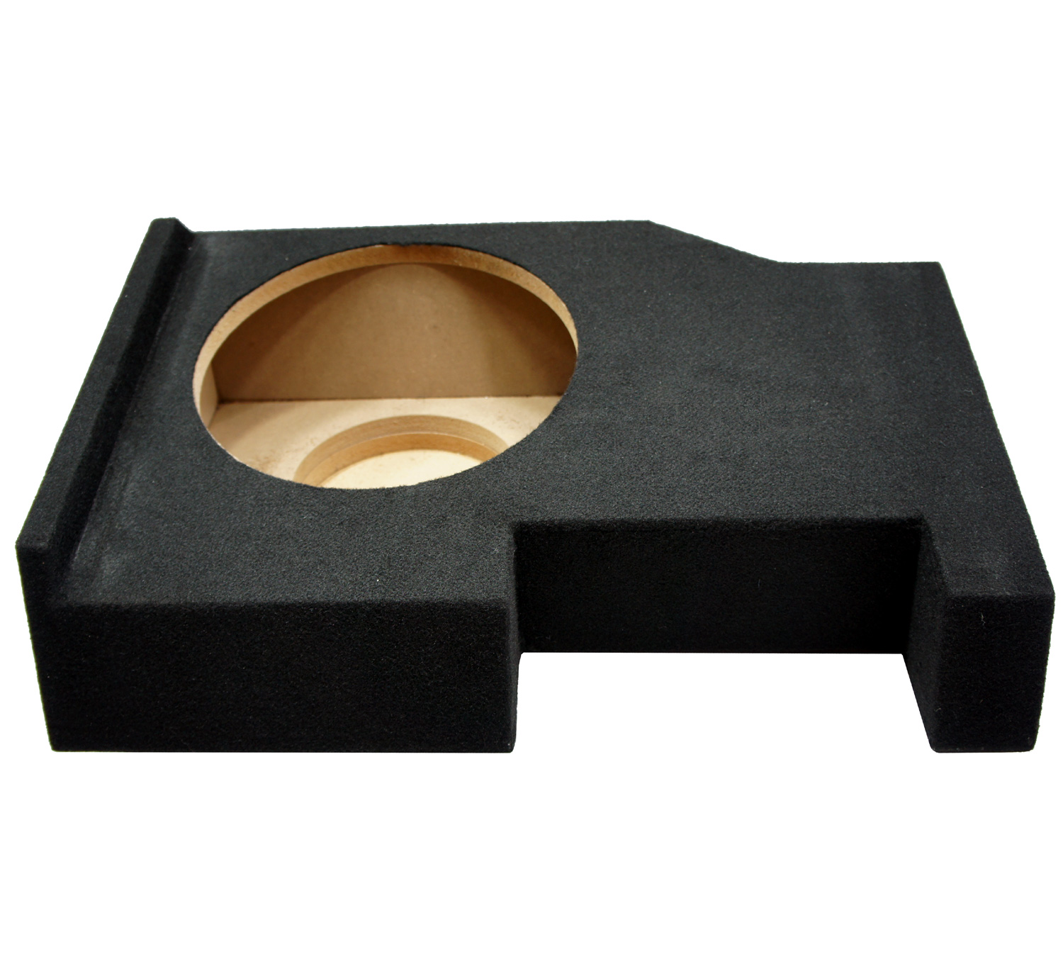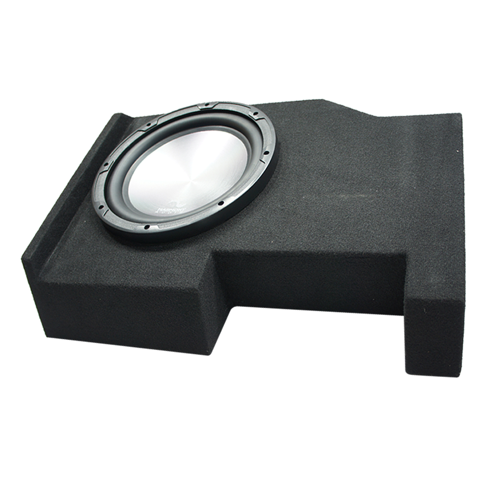 - Enclosure installs under the rear seat, subs fire downward