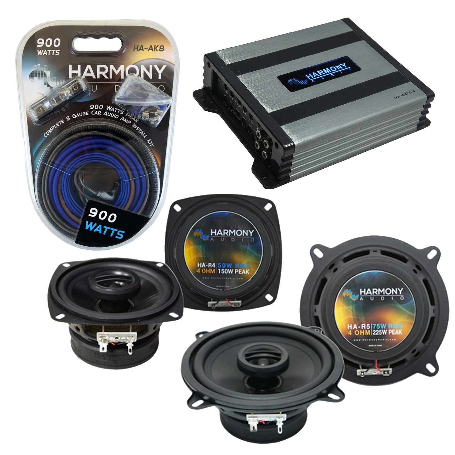 - 1 x Harmony Audio HA-A400.4 Car Stereo Alloy Amp 4 Channel 800W Fulll Range Speaker or Sub Amplifier