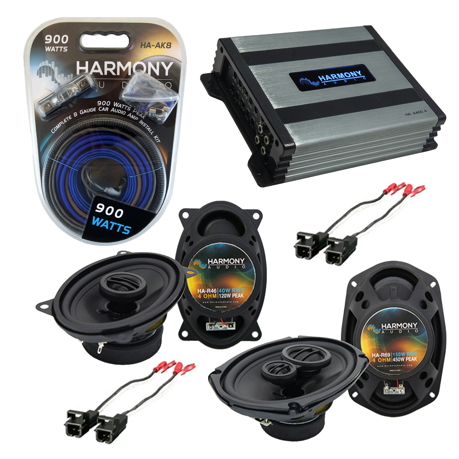 Chevy Malibu 1997-2003 Factory Speaker Upgrade Harmony R46 R69 & HA-A400.4 Amp