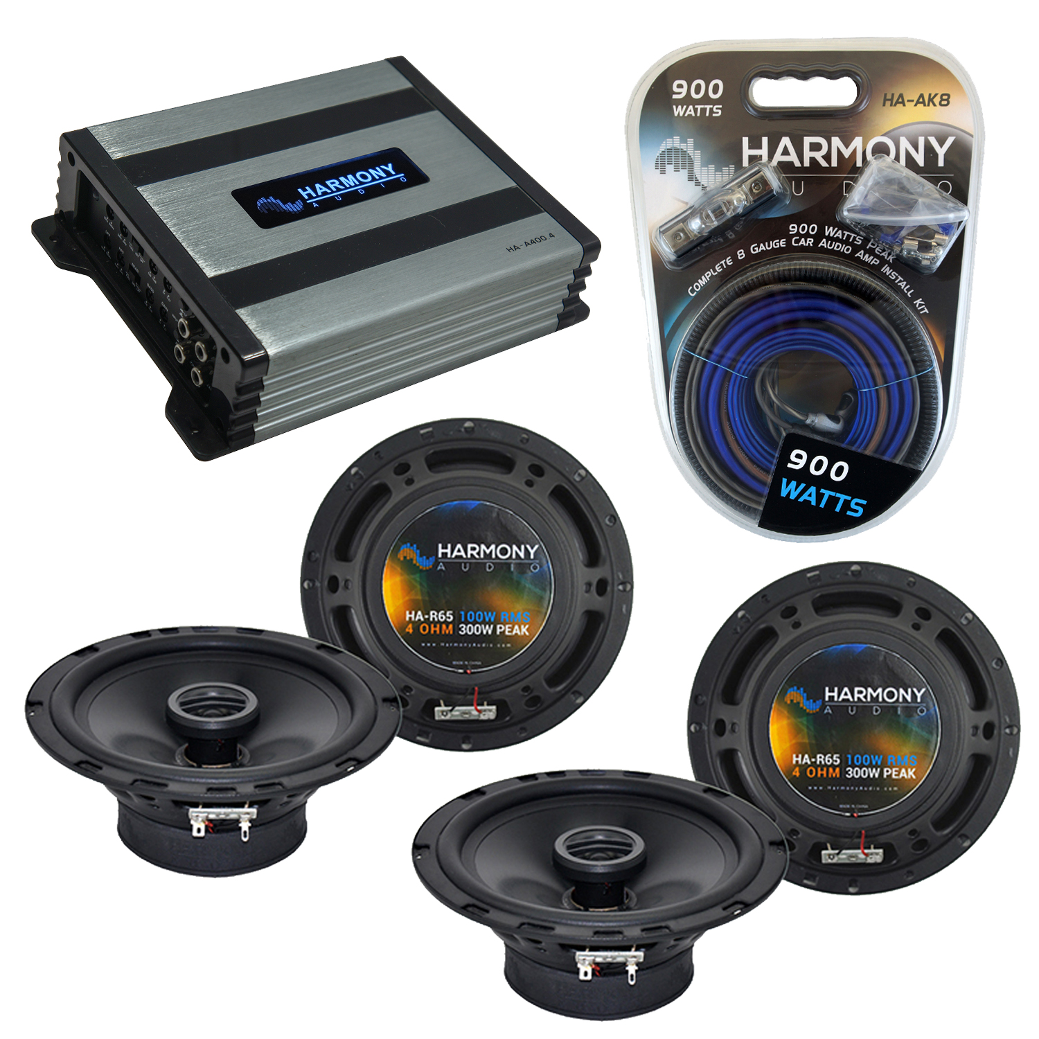- 1 x Harmony Audio HA-A400.4 Car Stereo Alloy Amp 4 Channel 800W Fulll Range Speaker or Sub Amplifier