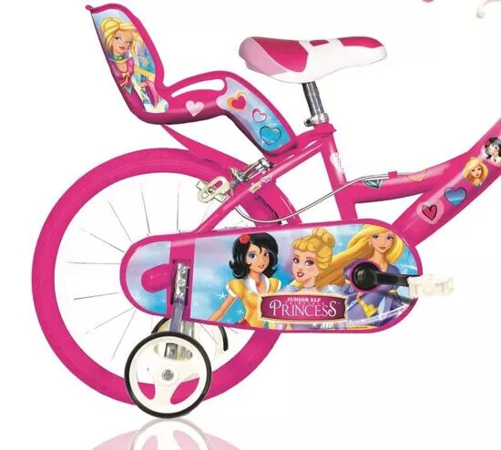 The Ice Princess Snowqueen kid's bicycle comes with a front calliper brake, and a fixed rear wheel; so when the pedalling stops, it comes to a halt. It features 16" wheels with mudguards as well as removable stabilisers. This bicycle also comes with an adjustable saddle and handlebars and a rear doll carrier with a strap and a front basket.