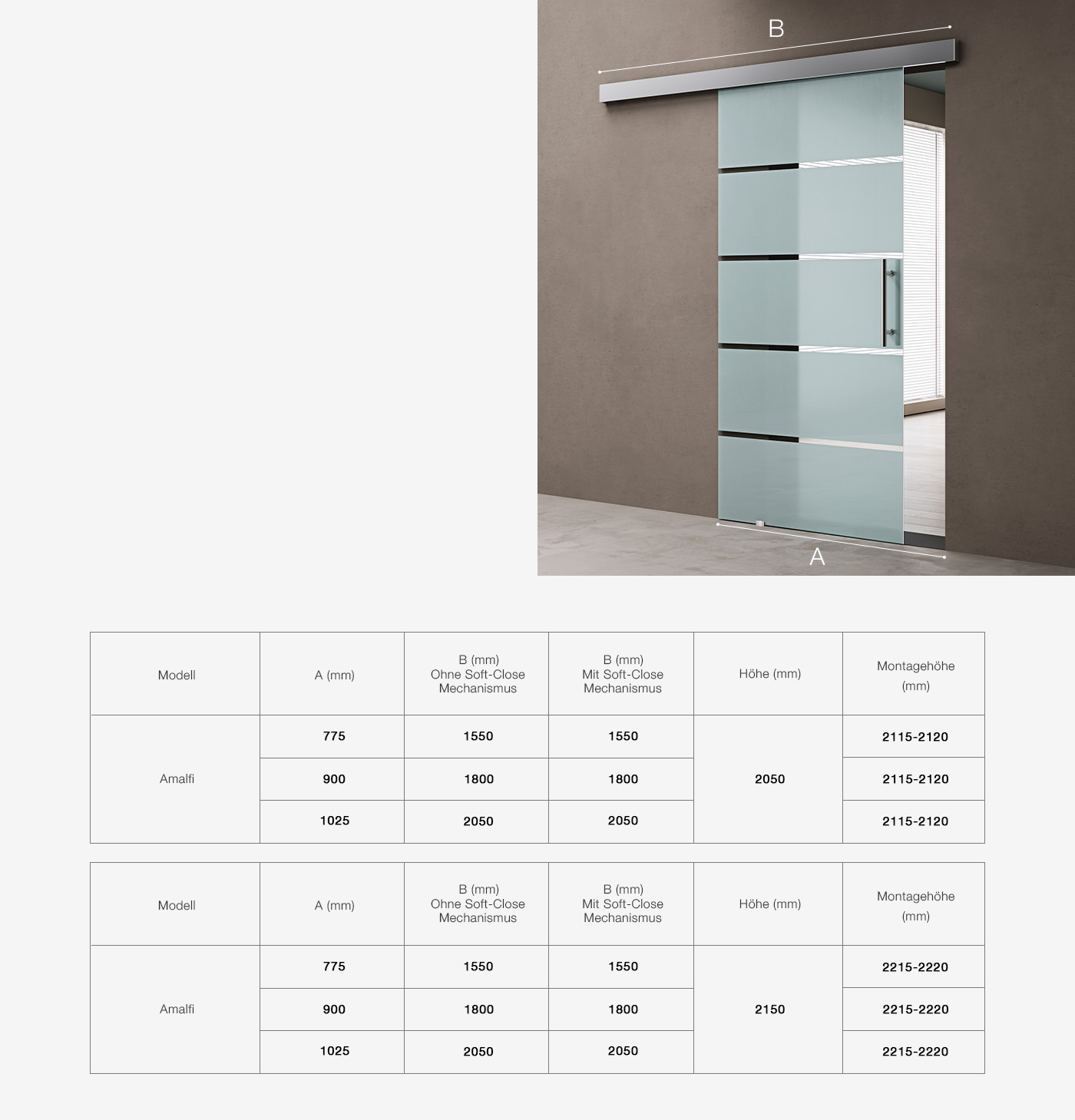 Sie haben jedoch die Möglichkeit, die Schiebetür mit einem zuverlässigen Soft-close Mechanismus auszustatten. Dieser sorgt für ein sanftes Schließen und Öffnen der Schiebetür.
