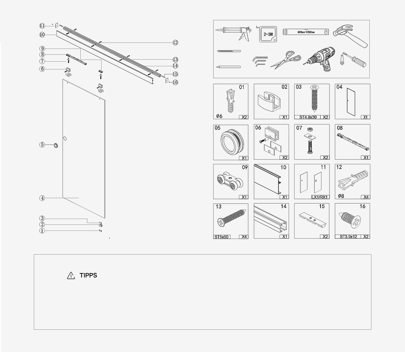 • Die Schiebetür ist platzsparend und leicht zu montieren.