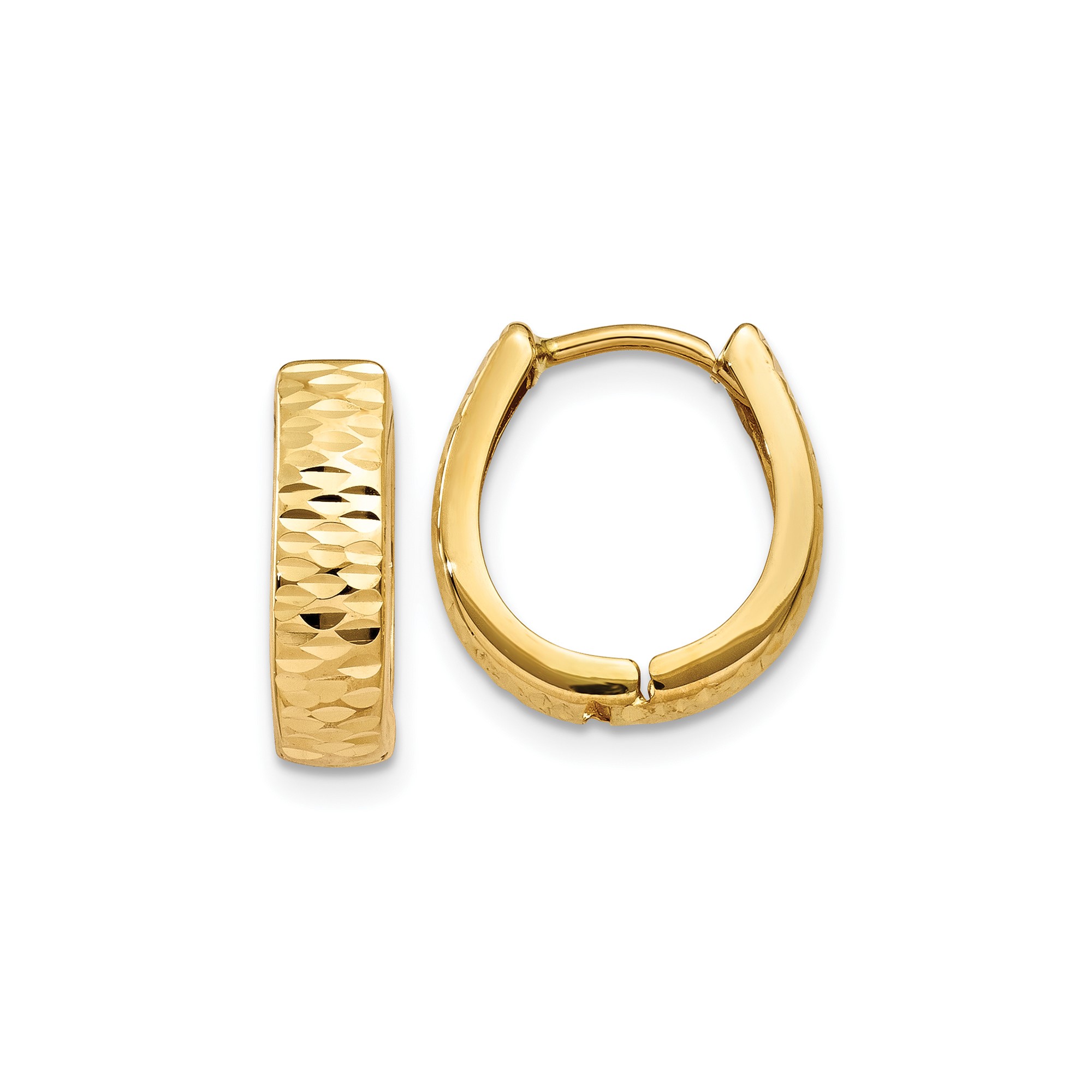 10k Yellow Gold Gold Textured and Polished Hinged Hoop Earrings