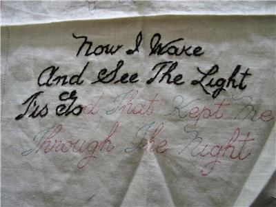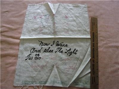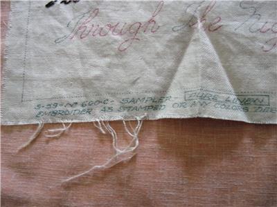 Partially completed linen stamped sampler from Betsy Ross Needlework. Clean and smoke free.