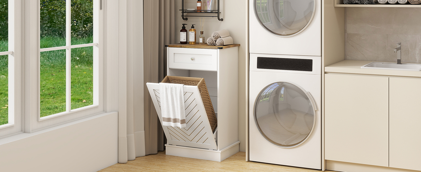 【One Big Storage Drawer】 -- The pull out storage drawer provide hidden storage space for trash bags, scissors and pet food. Includes a movable bamboo cutting board fits nicely onto the drawers top, providing additional cutting space that brought straight to the table.