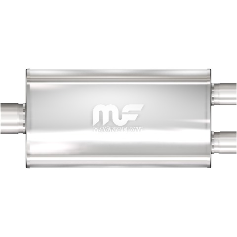Universal Performance Muffler - 3/2.5 The MagnaFlow 5" X 11" Oval Straight-Through 12588 is engineered to enhance your ride with a healthy helping of our signature exhaust sound and dyno-proven performance thanks to its free-flowing straight-through perforated stainless steel core wrapped in stainless steel mesh and acoustic fiber fill. The reversible, universal 3/2.5in. diameter inlet/outlet Straight-Through layout allows you to install it in whatever orientation and configuration you see fit. However, professional installation is highly recommended. Muffler 12588's weight-optimized 5x11x22in. oval-shaped body features a satin finish that elevates the overall aesthetics of your current exhaust setup. 12588 is made of durable, corrosion resistant stainless steel and produced using cutting-edge CNC precision robotic manufacturing techniques, all backed by MagnaFlow’s limited lifetime construction warranty.