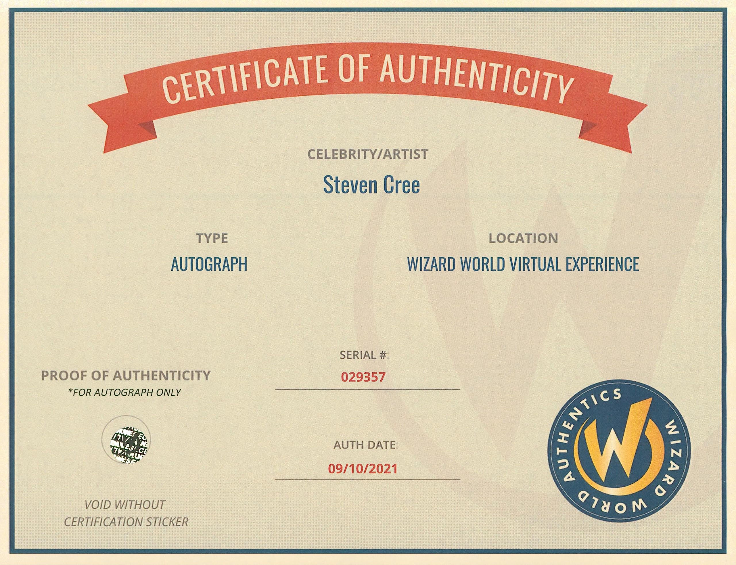 This Autographed 8x10 Photo has been Personally Signed by Steven Cree of A Discovery Of Witches. This item is 100% Authentic to include a Certificate of Authenticity (COA) / hologram by Wizard World Authentics. A Wizard World Authentics representative was present when this item was being signed, the date of the signing is notated on the COA. We have multiples of this same item. While the photographs are representative of this item, the size, placement and strength of the signature may vary. Each item is hand signed, therefore, each autograph is unique.