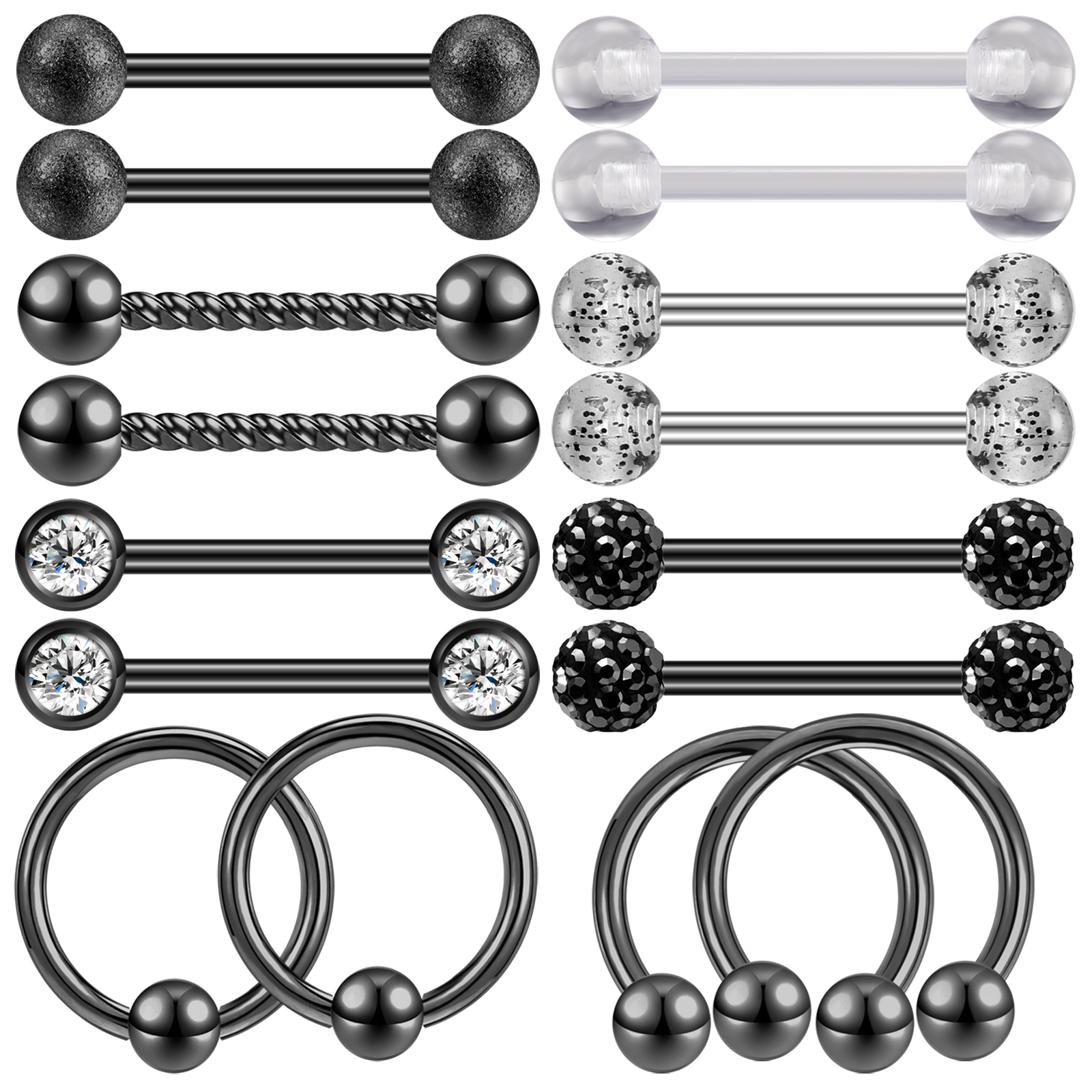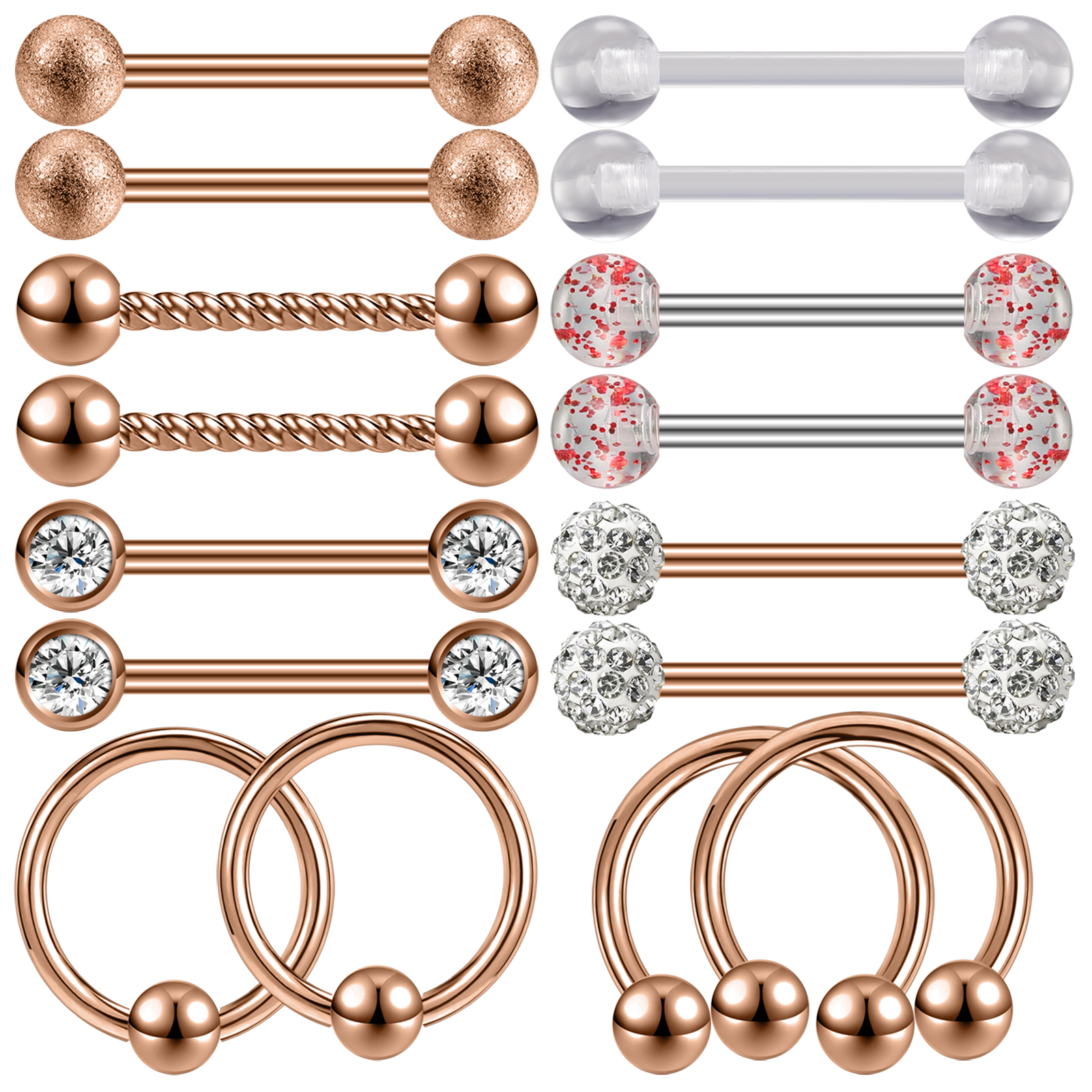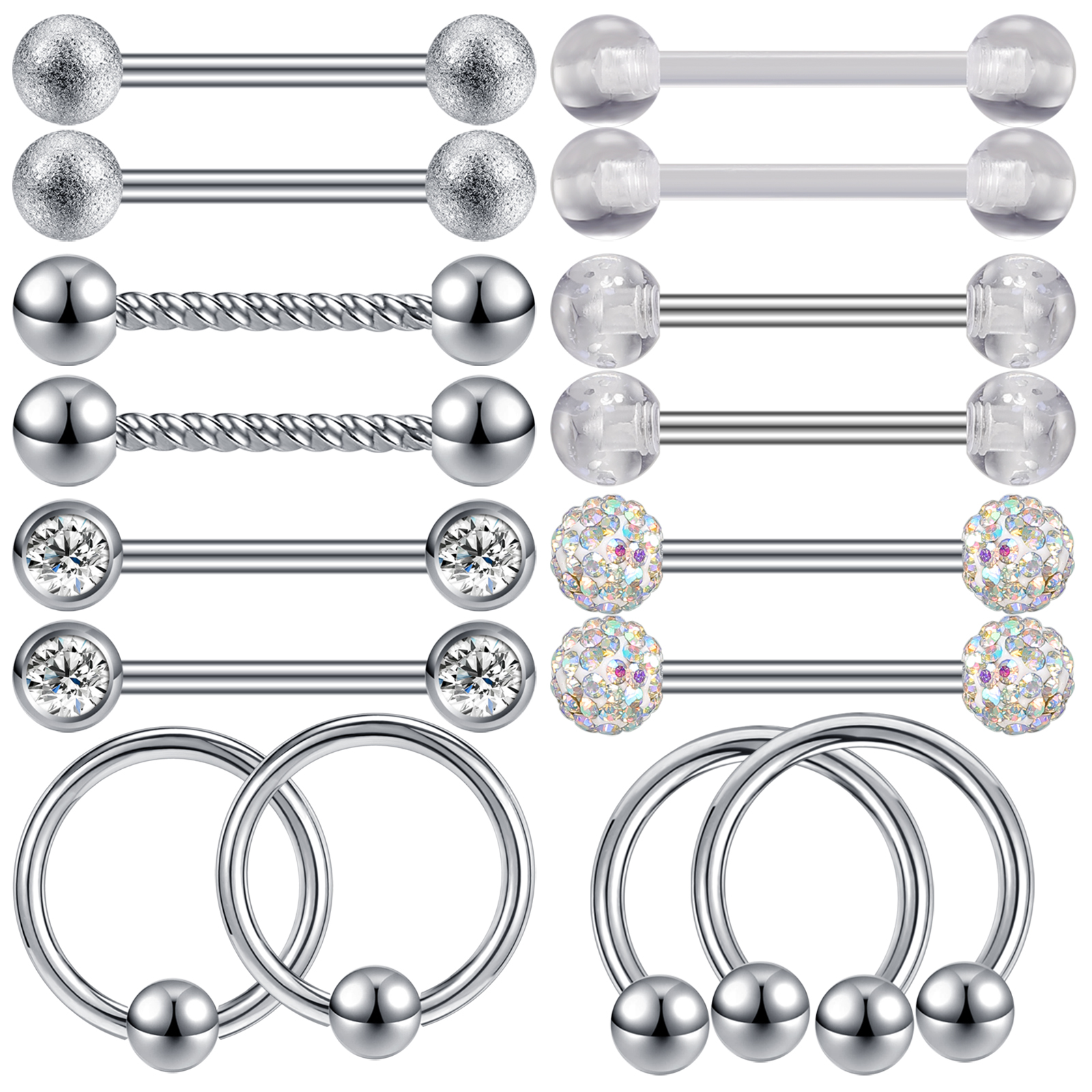 Size: Gauge: 14g(1.6mm), Barbells Bar Length: 14mm, Ball Diameter: 5/5mm, Nipple Hoop Rings Inner Diameter: 14mm.