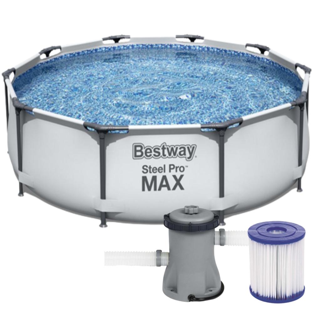 Set piscina fuori terra rotonda Steel Pro MAX da 305x76 cm grigio chiaro