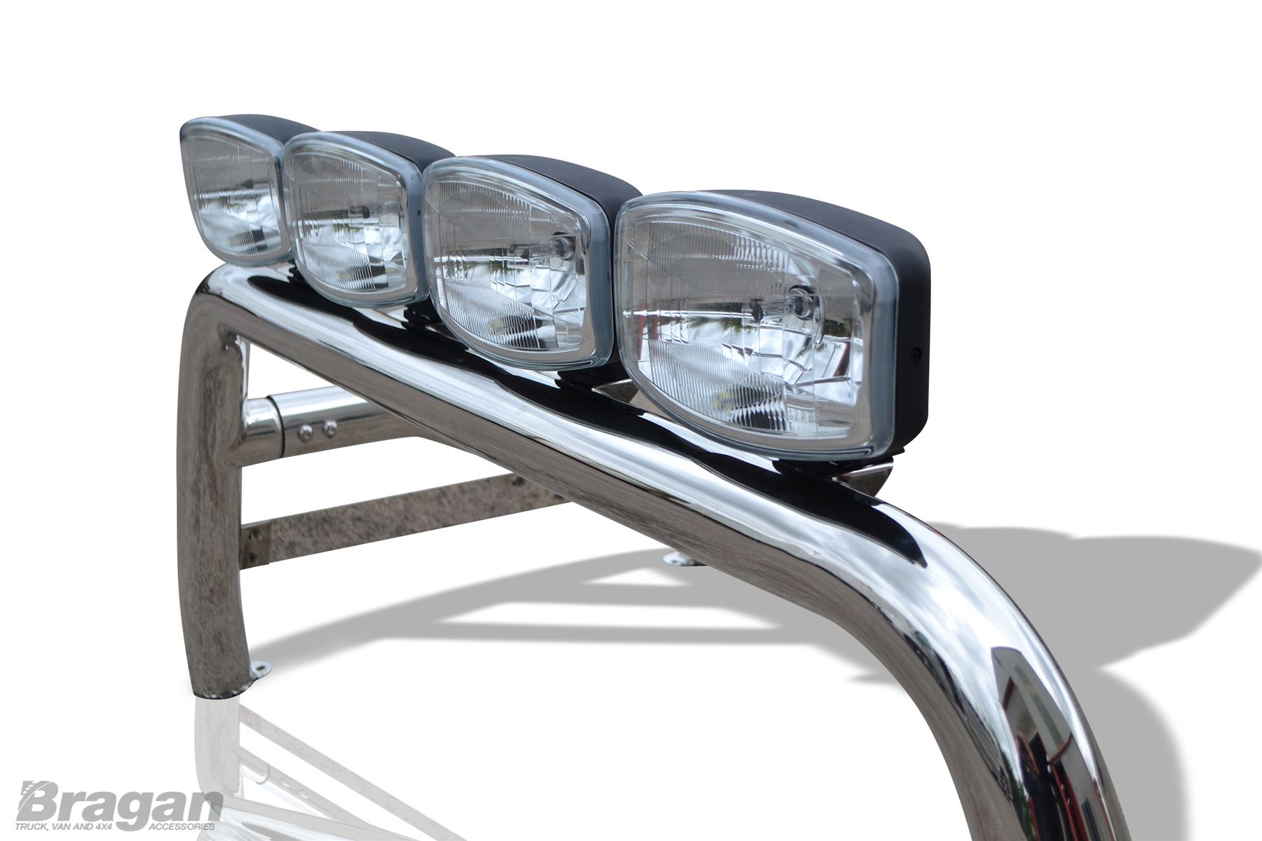 The bars are 3 inches / 75 mm diameter with powder coated black fixing brackets and fit neatly on the top of the bed of your 4x4.