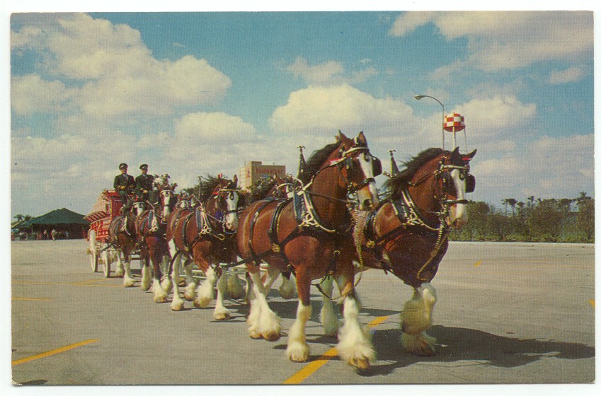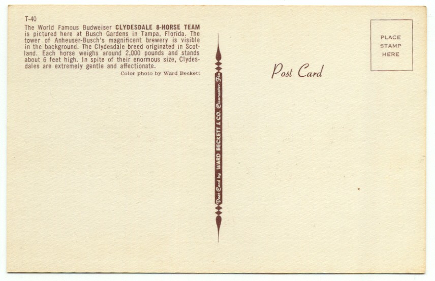 Budweiser Clydesdale 8-Horse Team Busch Gardens Tampa Florida Postcard