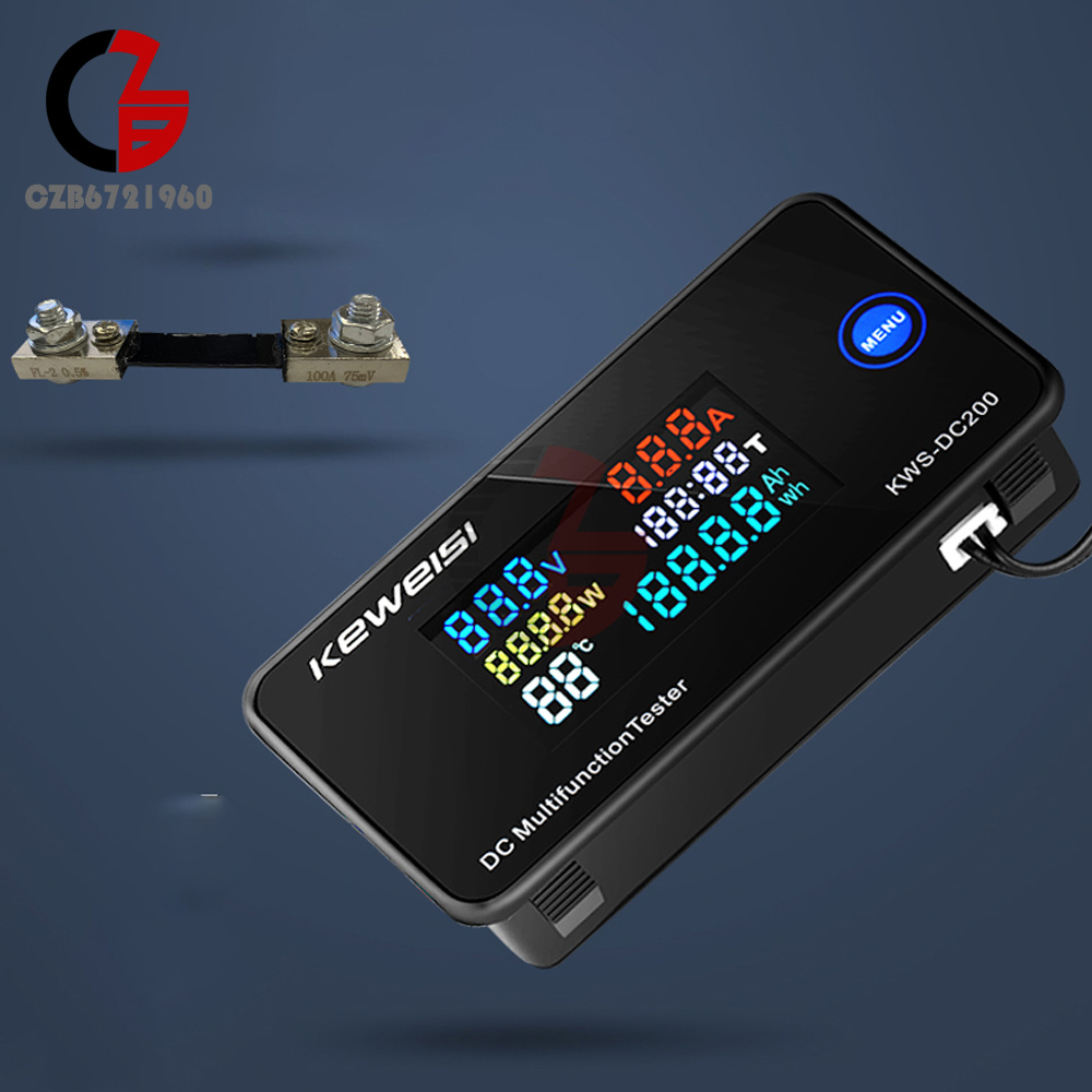 LED Voltage Current Temperature Digital Meter DC0-200V Built-in Shunt 10/50/100A