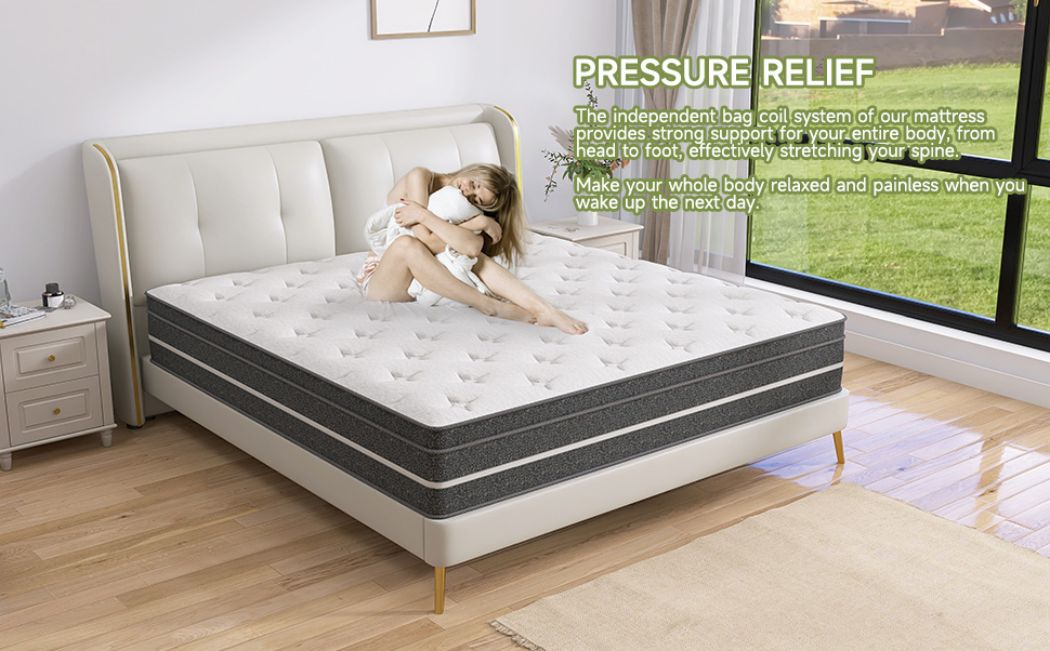 Our Mattress has been designed using sturdy inner pocket-spring construction finished with several layers of high-density foam. The unique 7-zone design of the mattress provides both pressure-relief and support. To make it better, we use independent pocket spring with 6-turn coils that lasts longer due its shape and structure, while the upper foam layers have been designed to adjust to the body and provide a customized and relaxing sleep surface. The luxury breathable top with high quality knitted jacquard fabric helps to keep the mattress cool and dry.