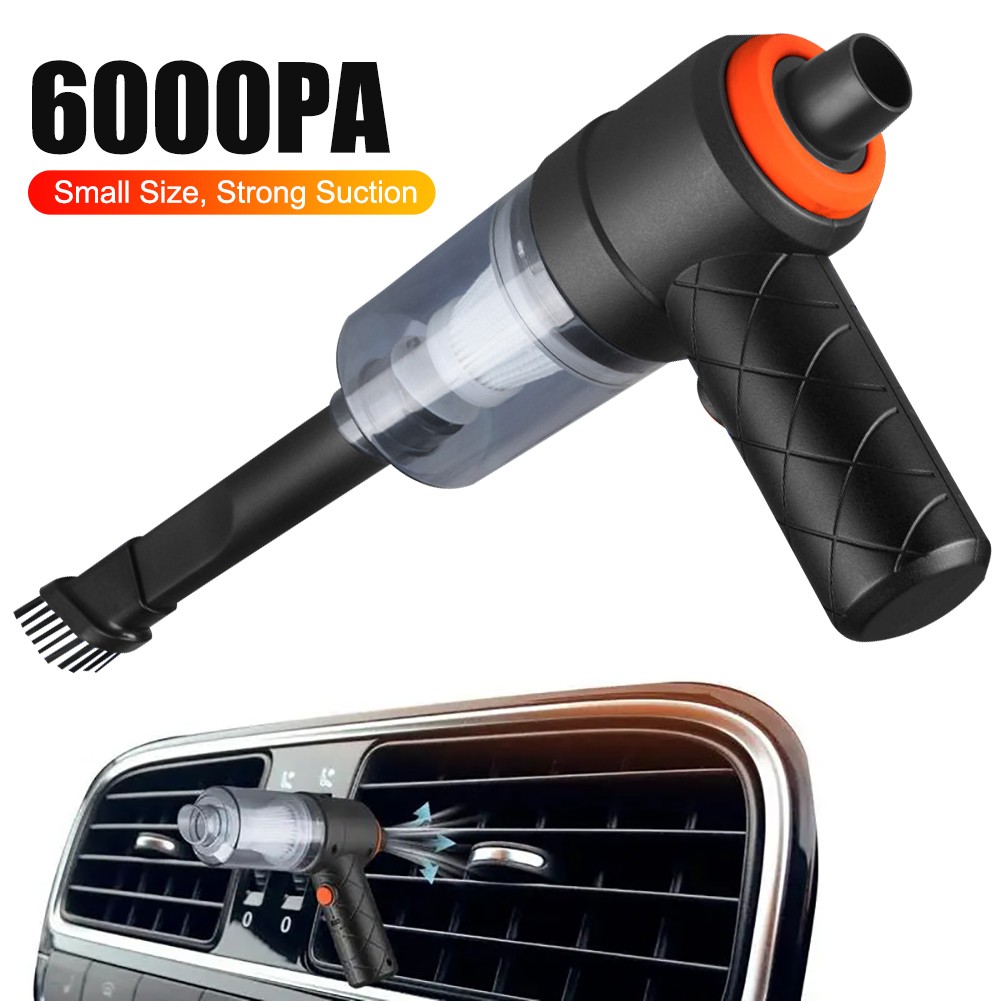 *2. High-power Suction&Blowing: This portable car vacuum cleaner is equipped with a powerful motor and dual-duct structure that generate 6000PA strong suction to handle dust, hair, crumbs, and other dirt in the car. And its tail vent blows dust.