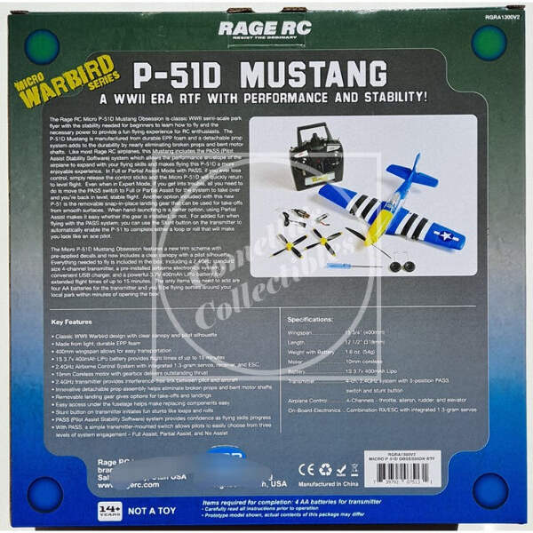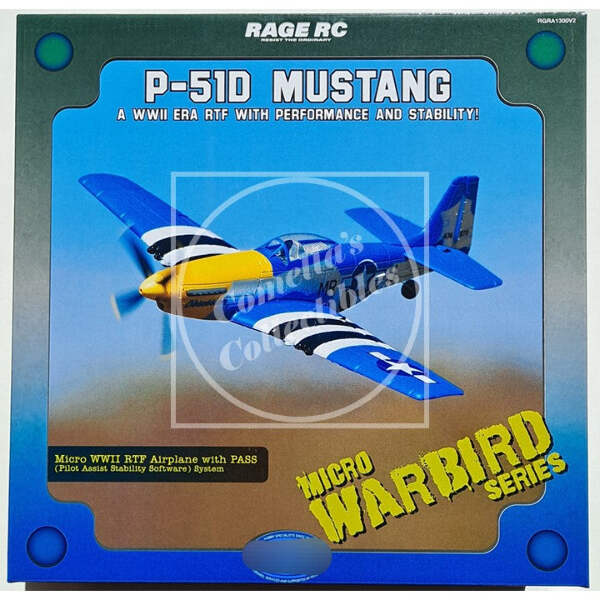 Rage RC P-51D Mustang Micro Ready To Fly Airplane with Pilot Assist Stability Software (PASS) RGRA1300V2 in factory sealed retail box.