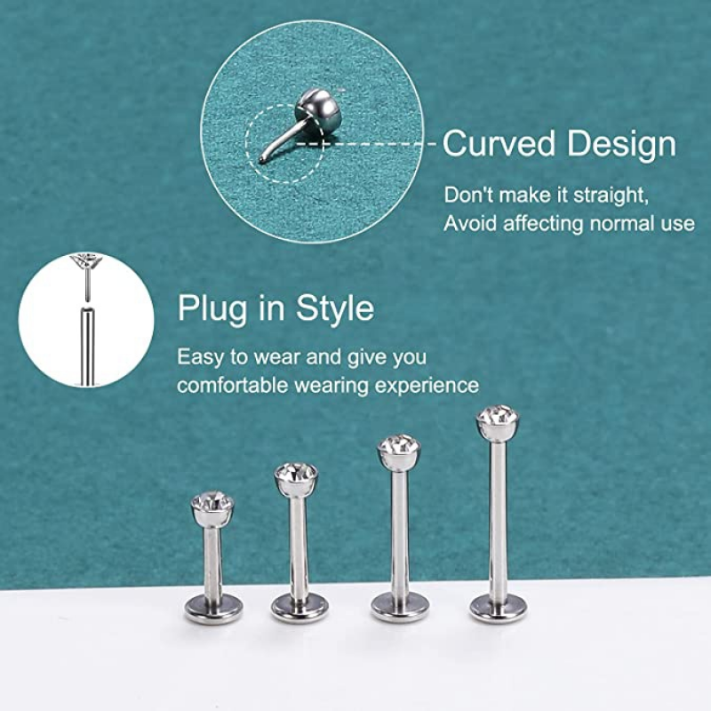 Feature: These Flat Back Lip Piercings Earrings Studs are Plug in Style Design , Easy to Wear and Give You Comfortable Wearing Experience. Simple and Stylish Design with Zircon Embellishments, Add More Fresh and Difference for Your Everyday Looks Even for Wedding, Valentine's Day and Other Special Parties.