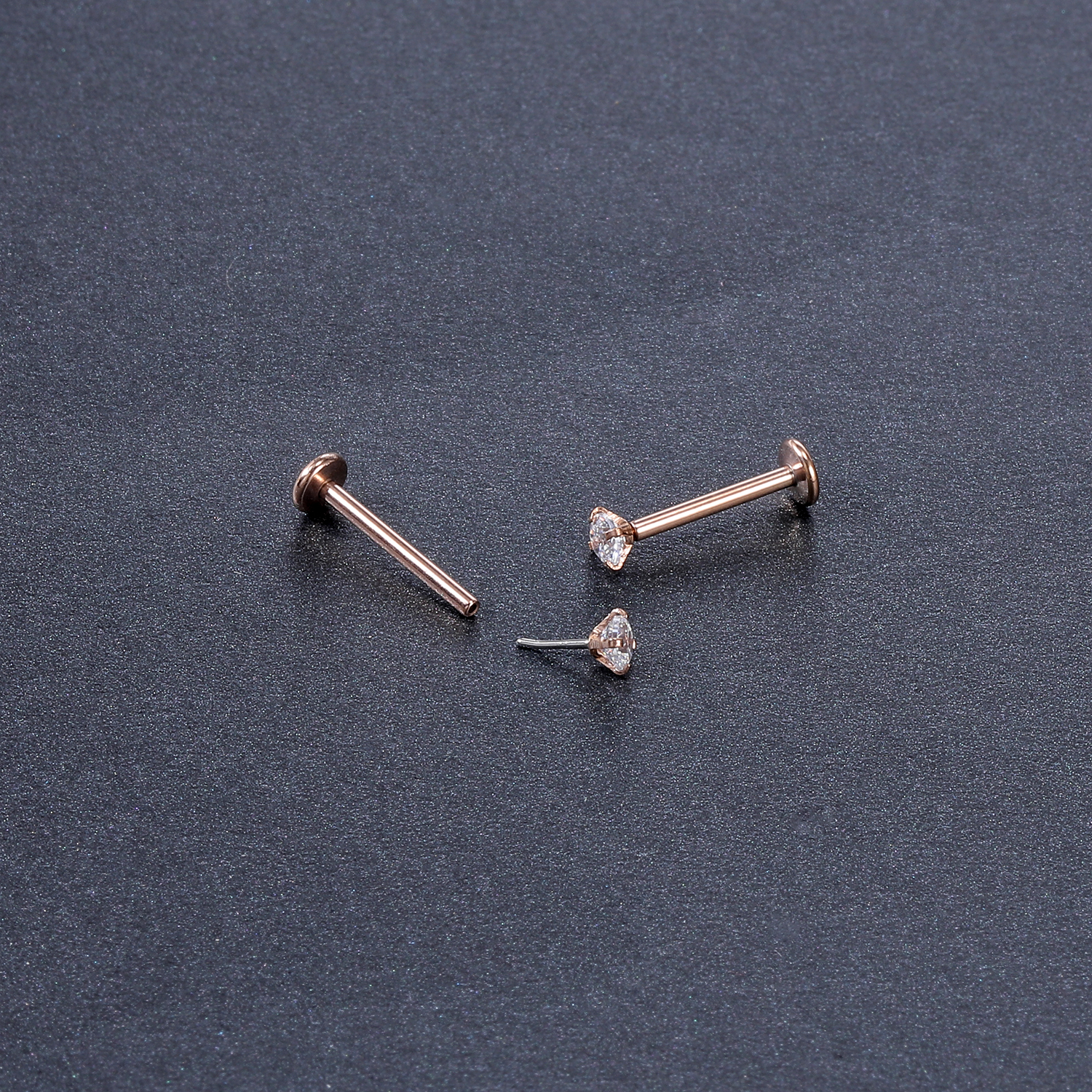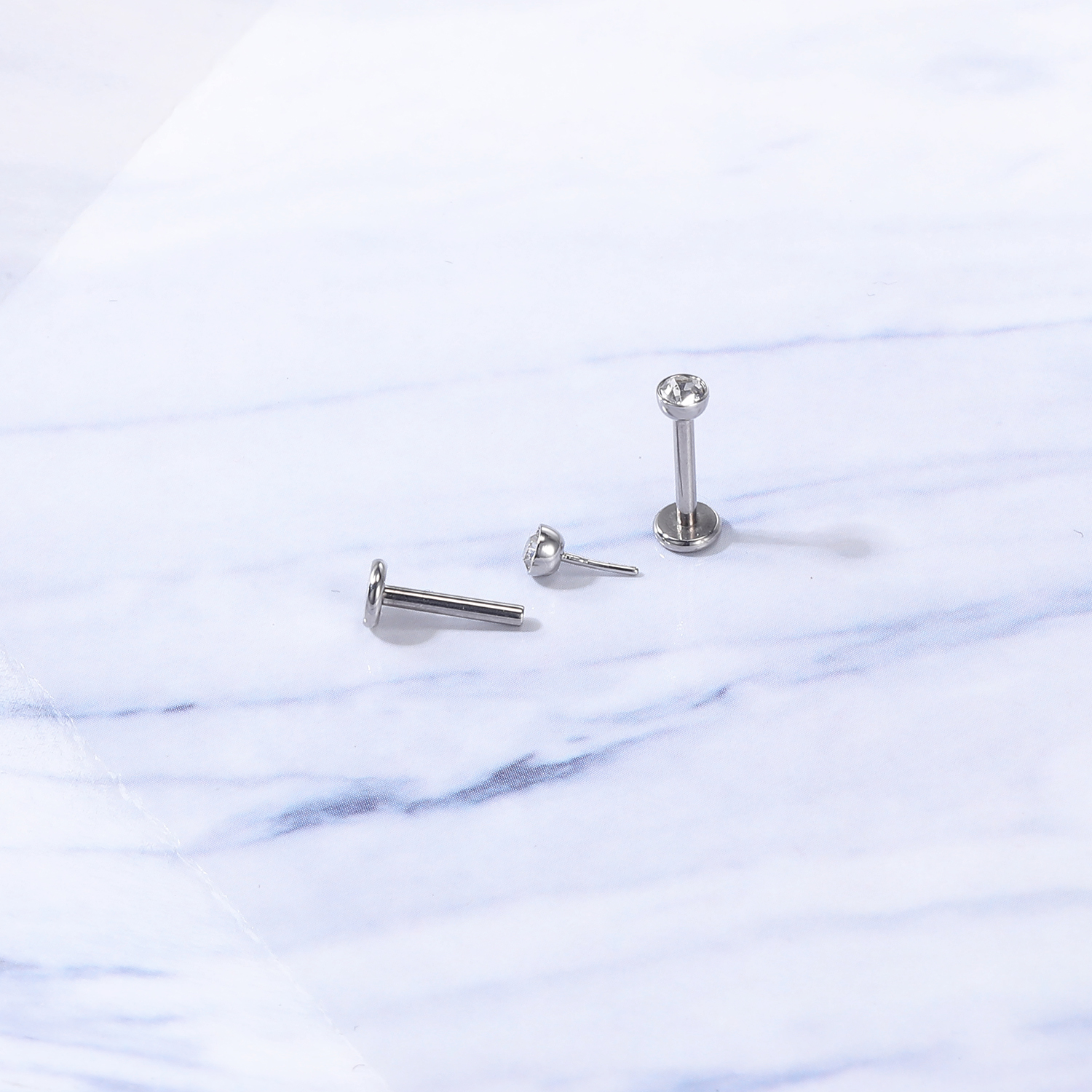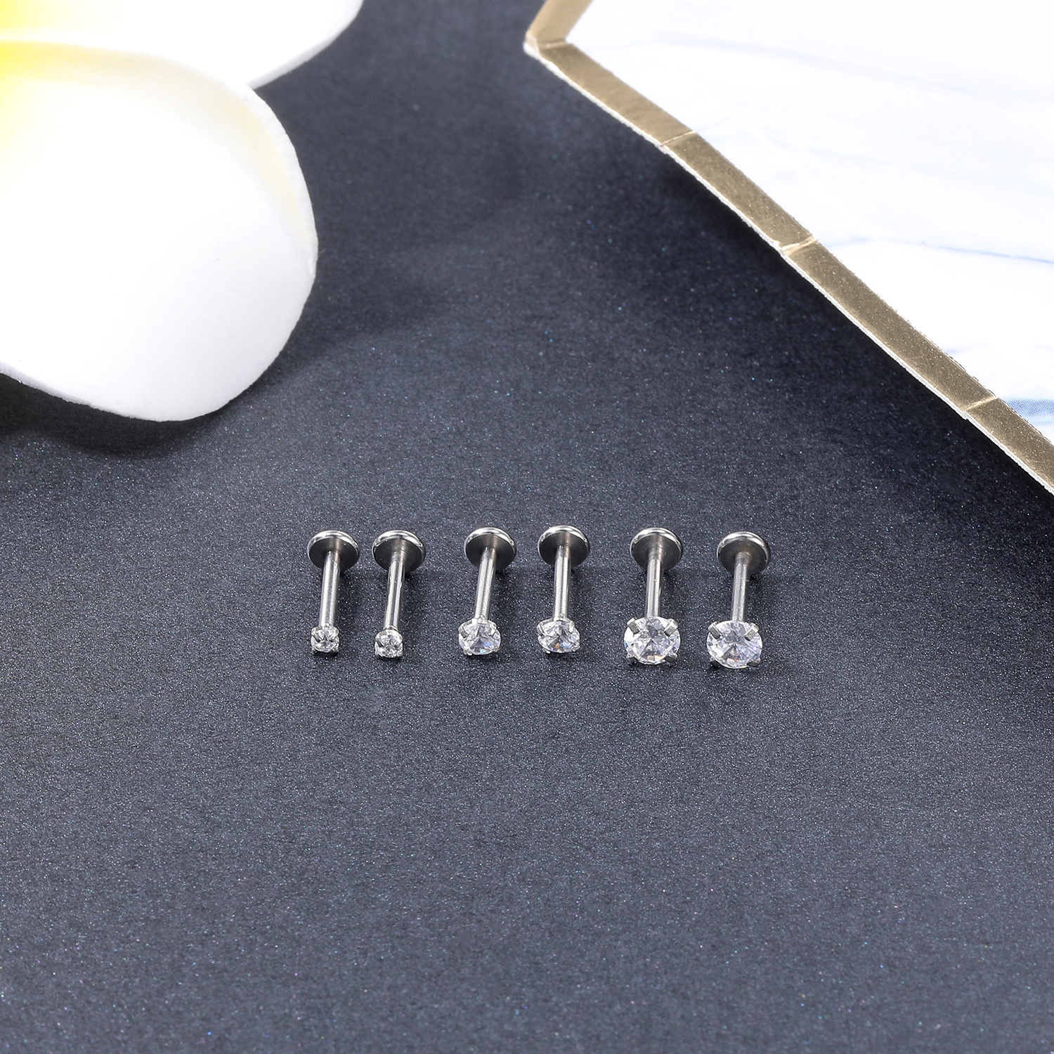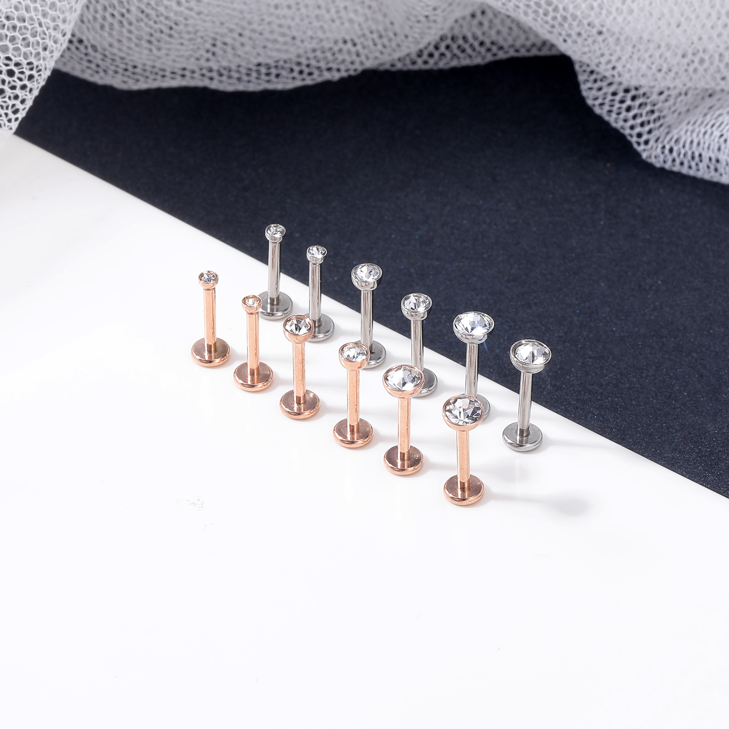 10Pcs Plug-in Style Stainless Steel 16G Lip Labret Piercing CZ Tragus Piercings