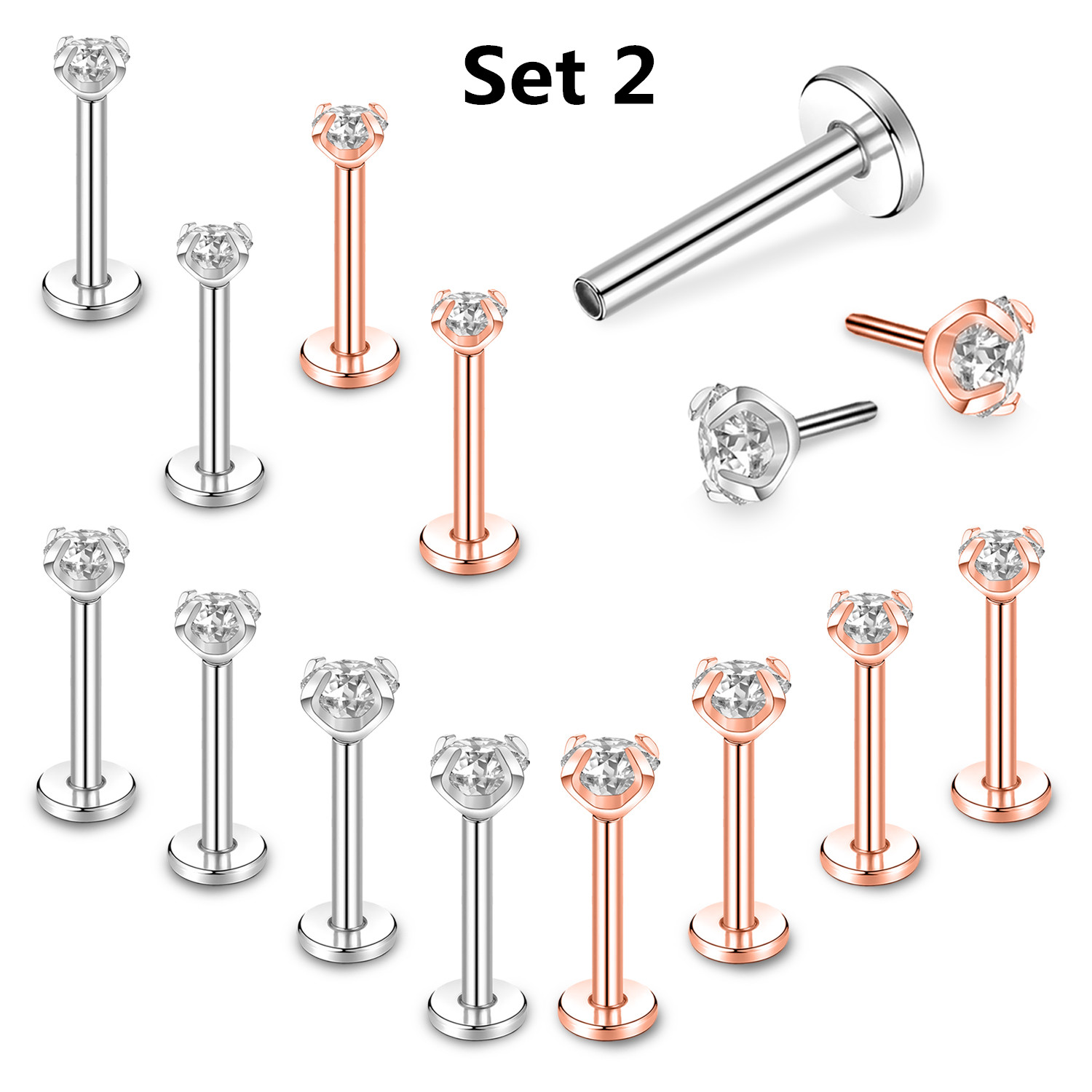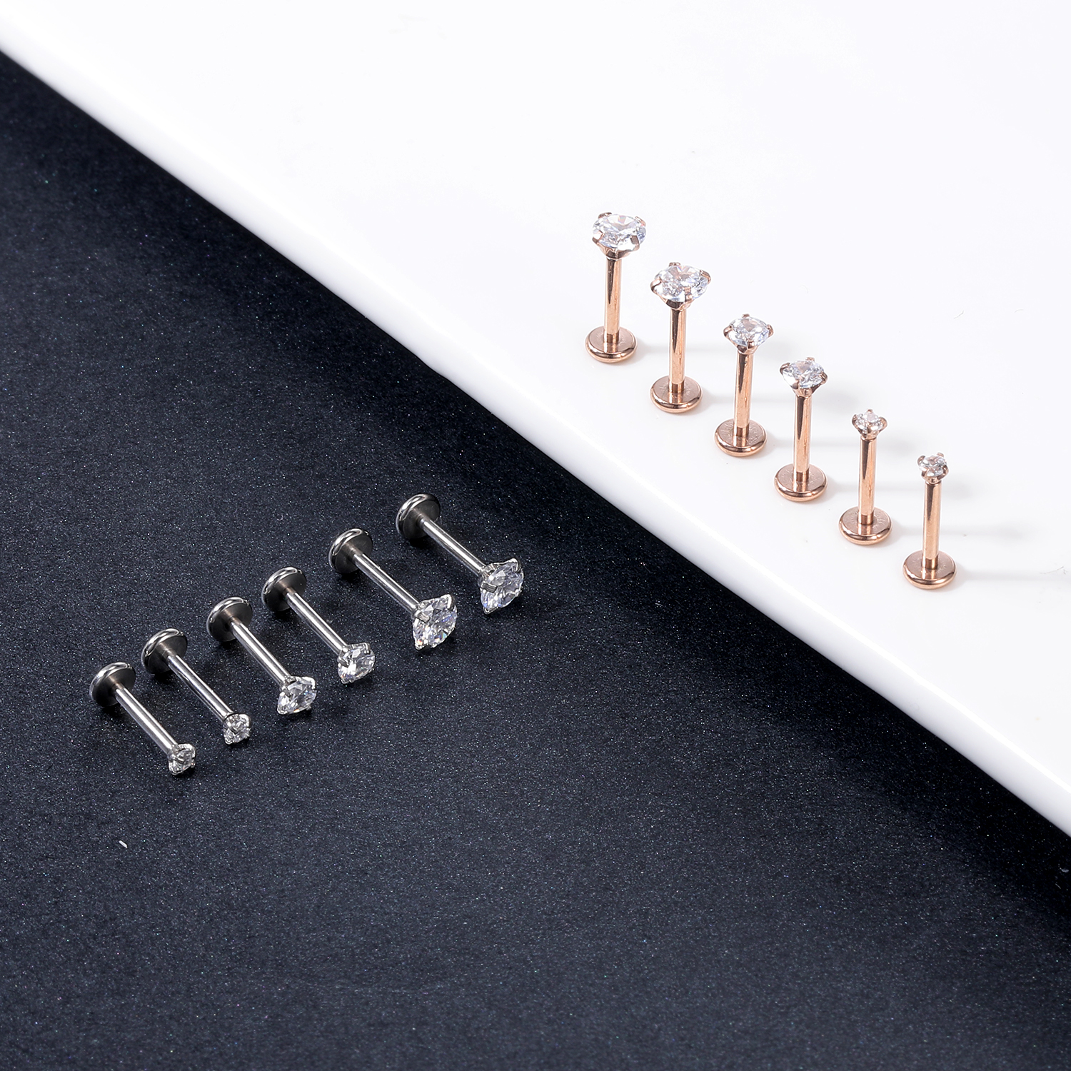 16G CZ Crystal Lip Piercing Set Stainless Steel Opal Cartilage Piercing Jewelry