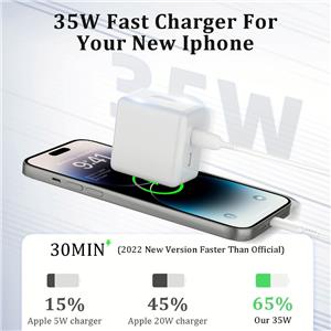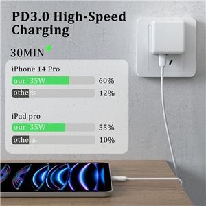 【35W Fast Charger】PD USB C Wall Charger Fast Charge Port with maximum output of 35W, 5 times faster than 5V 2A charger(Note: When both ports are charging at the same time, 35W is shared.)