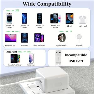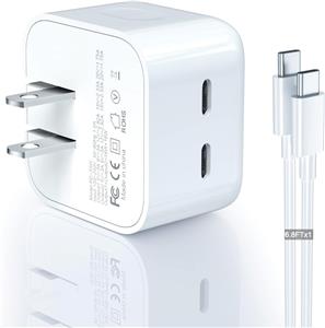 【Dual USB-C Ports】Using intelligent power allocation technology, the dual-port PD power adapter automatically detects and optimizes the power supply to ensure the connected devices always get the best charge, it could fast charge two devices at the same time.