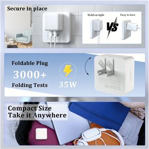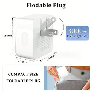 【FoldableWall Charger】Iit has a 90° foldable plug, you can fold it back and put it in your pocket to take with you, you can charge your devices anytime, anywhere!