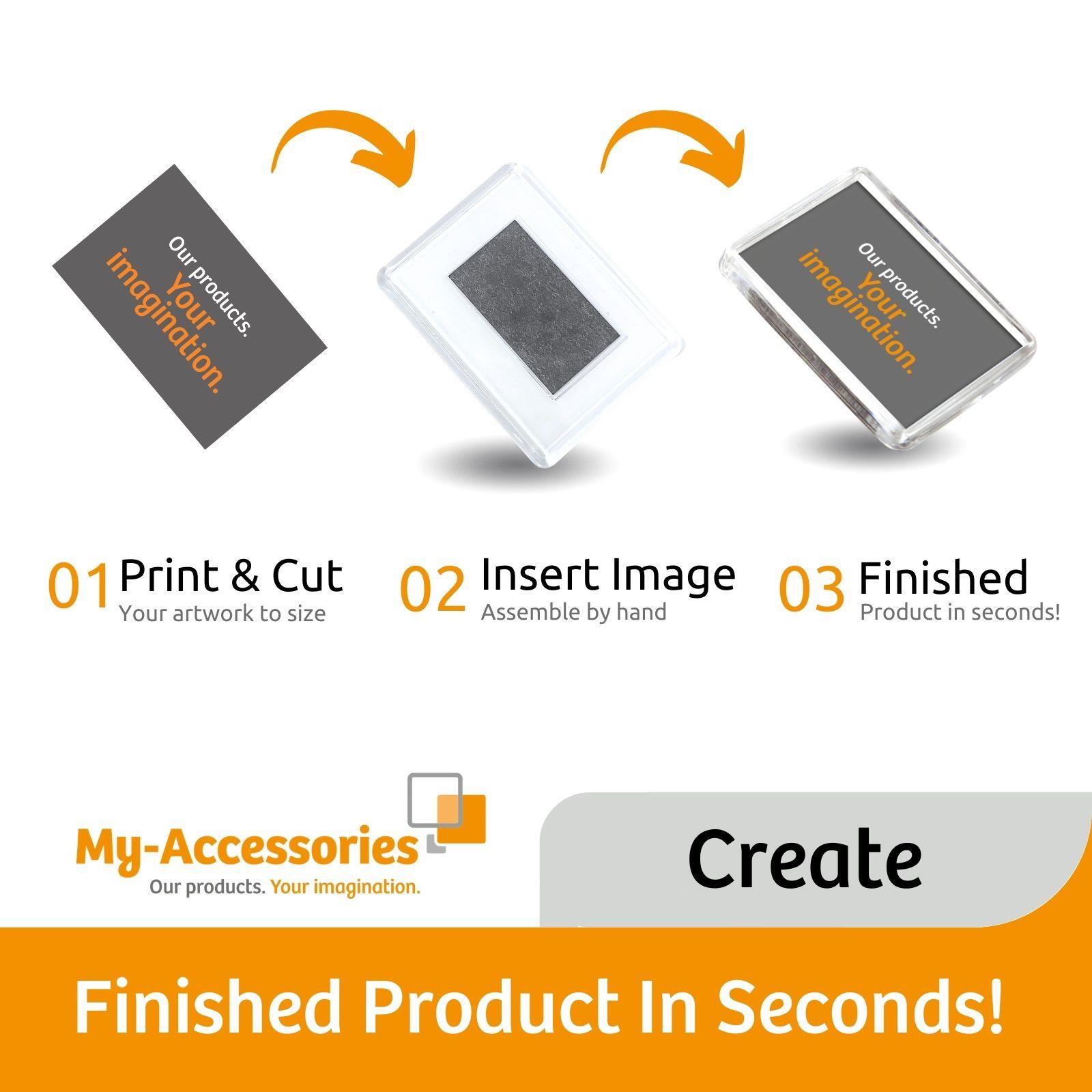 My Accessories specialise in supplying blank promotional and gifts items that all have the ability to insert your own artwork, craftwork and photos, allowing our customers to produce finished promotional and gift merchandise for giveaway or re-sale. Whether its keyrings, badges, coasters, magnets or photo gifts, our products will inspire you to design and make first class promotional and gift items quickly and easily. We’ve got something for all tastes and budgets and we’re here to make it as easy as possible for you to create quality products!