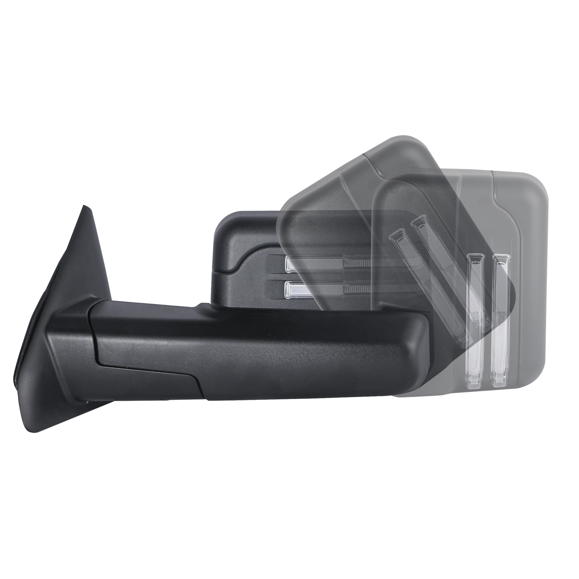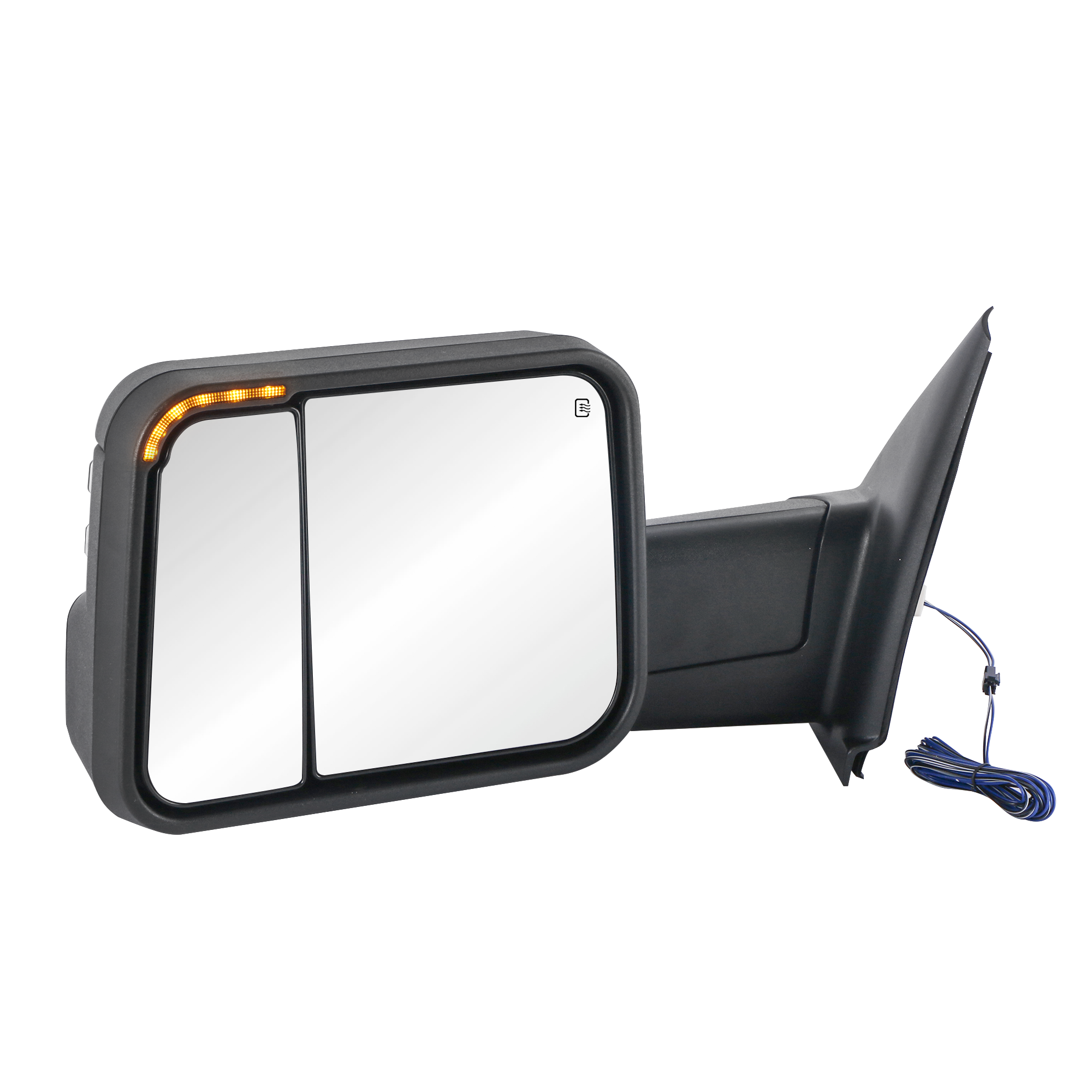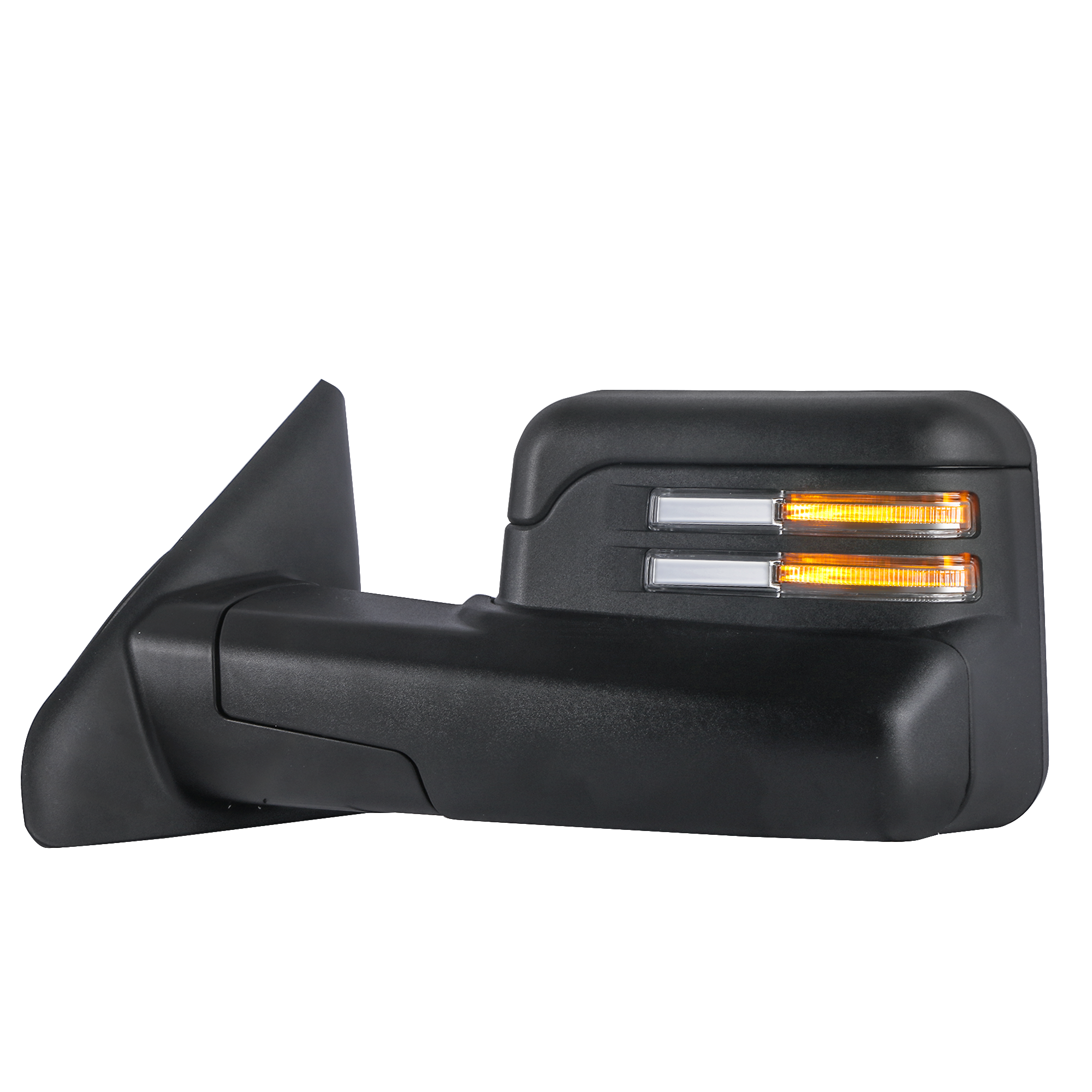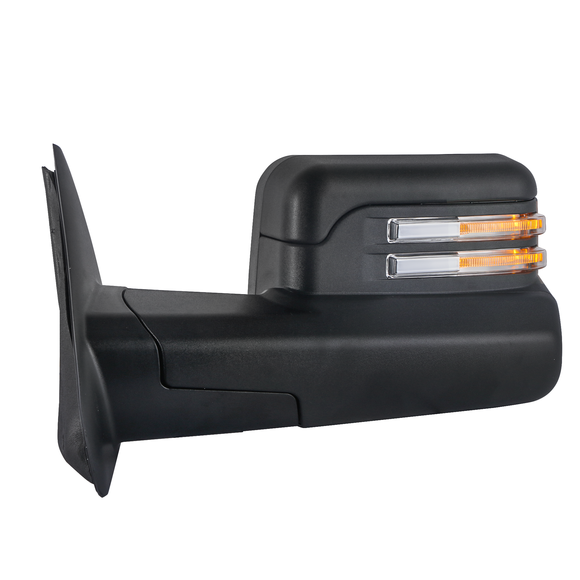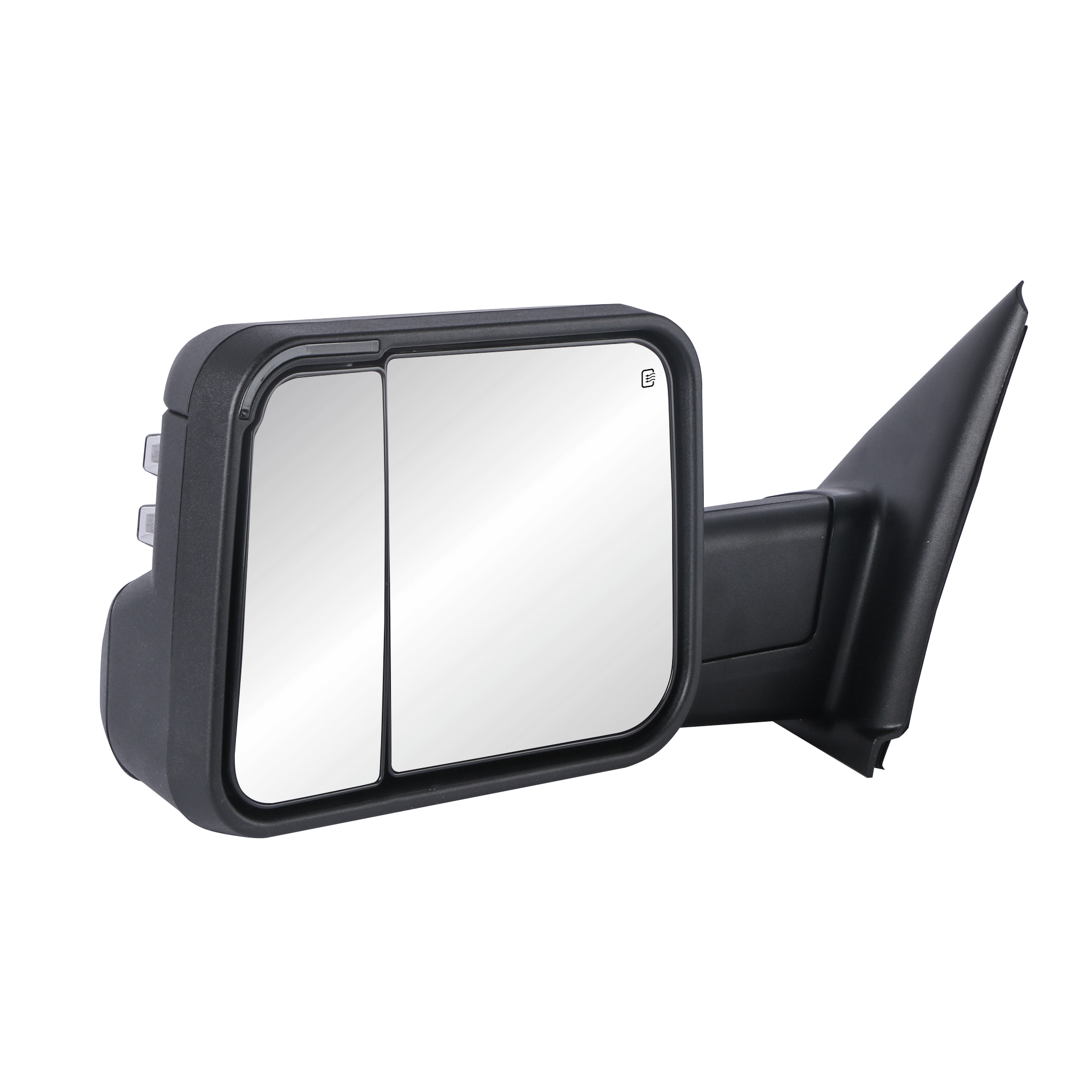 With latest design of Towing manual telescoping mirrors and Bigger size frame, Two pieces of mirrors can be adjusted independently, better view, better for use.