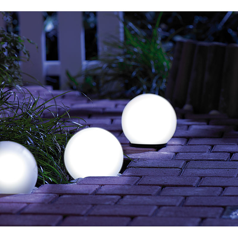 Licht geht automatisch an: Dank Dämmerungs-Sensor schalten sich die Leuchtkugeln bei Einbruch der Dunkelheit ganz von selbst ein. So haben sie nachts auf der Hofeinfahrt oder dem Hauseingang eine dezente Beleuchtung.