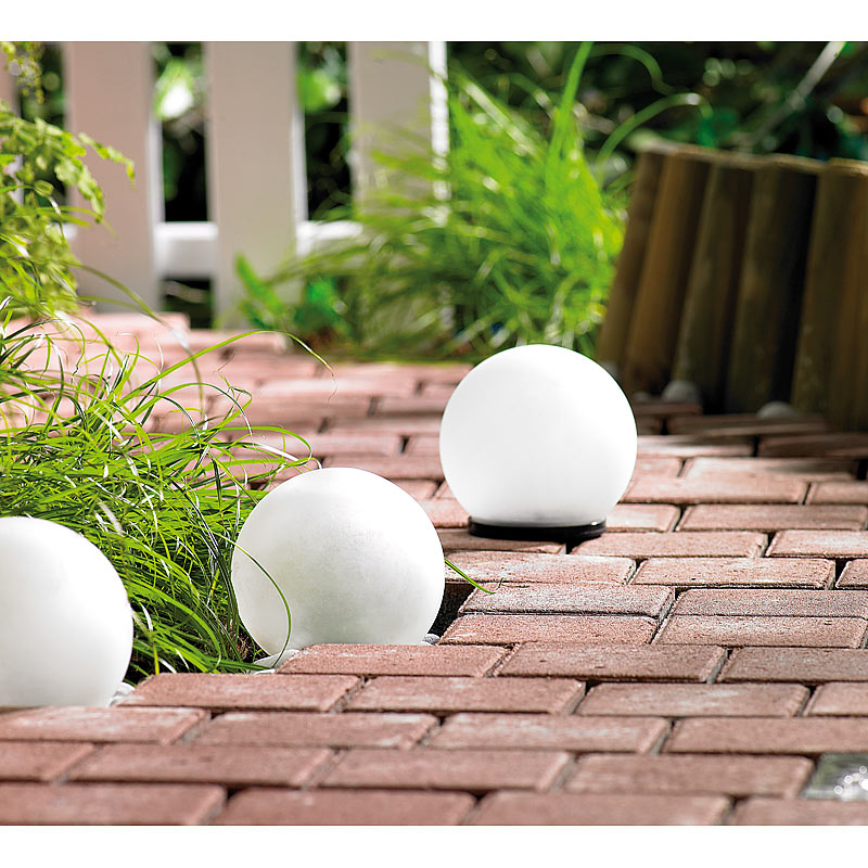 - 2er-Set wetterfeste Leuchtkugeln aus weiß-milchigem Echtglas