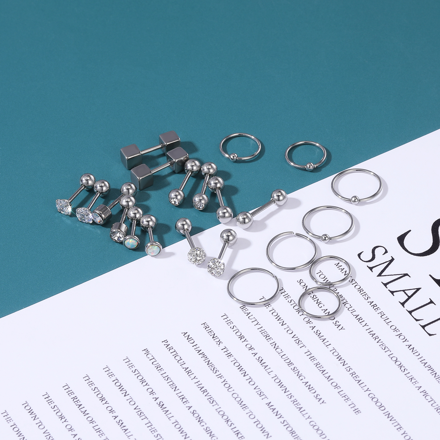 33Pcs/Set Stainless Steel Ear Stud Earring Hoop CZ Barbell Tragus Helix Piercing