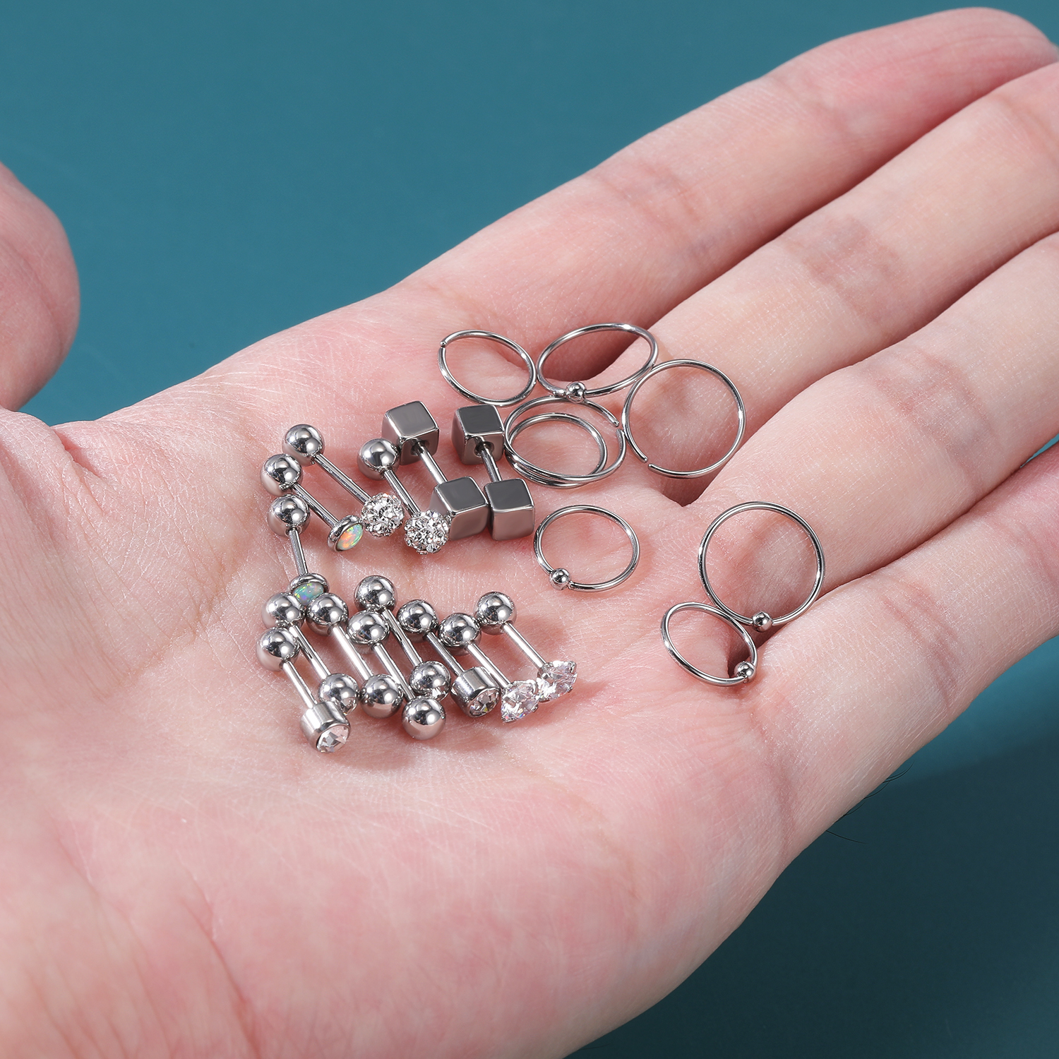 16G CZ Crystal Lip Piercing Set Stainless Steel Opal Cartilage Piercing Jewelry