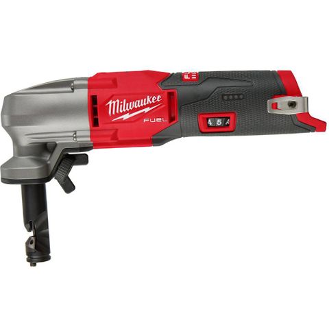 The Milwaukee M12 FUEL 16-Gauge Variable Speed Nibbler is a compact light weight tool that provides the same cutting capacity as its 18-Volt competitors on a 12-Volt system. Delivering fast clean cuts in 16-Gauge mild steel, the nibbler is rated for 18-Gauge stainless steel and 12-Gauge aluminum. Milwaukee M12 FUEL 16-Gauge Variable Speed Nibbler has the power to perform in heavy applications such as cutting up to 22-Gauge spiral duct seams. The nibbler tool provides a variable speed dial, tool-freedie holder orientation change, and LED work light offers maximum control and productivity. The unique chip collection bag, kitted with the tool, reduces jobsite cleanup. The Milwaukee compact and light weight form factor enables greater access and mobility on the jobsite.