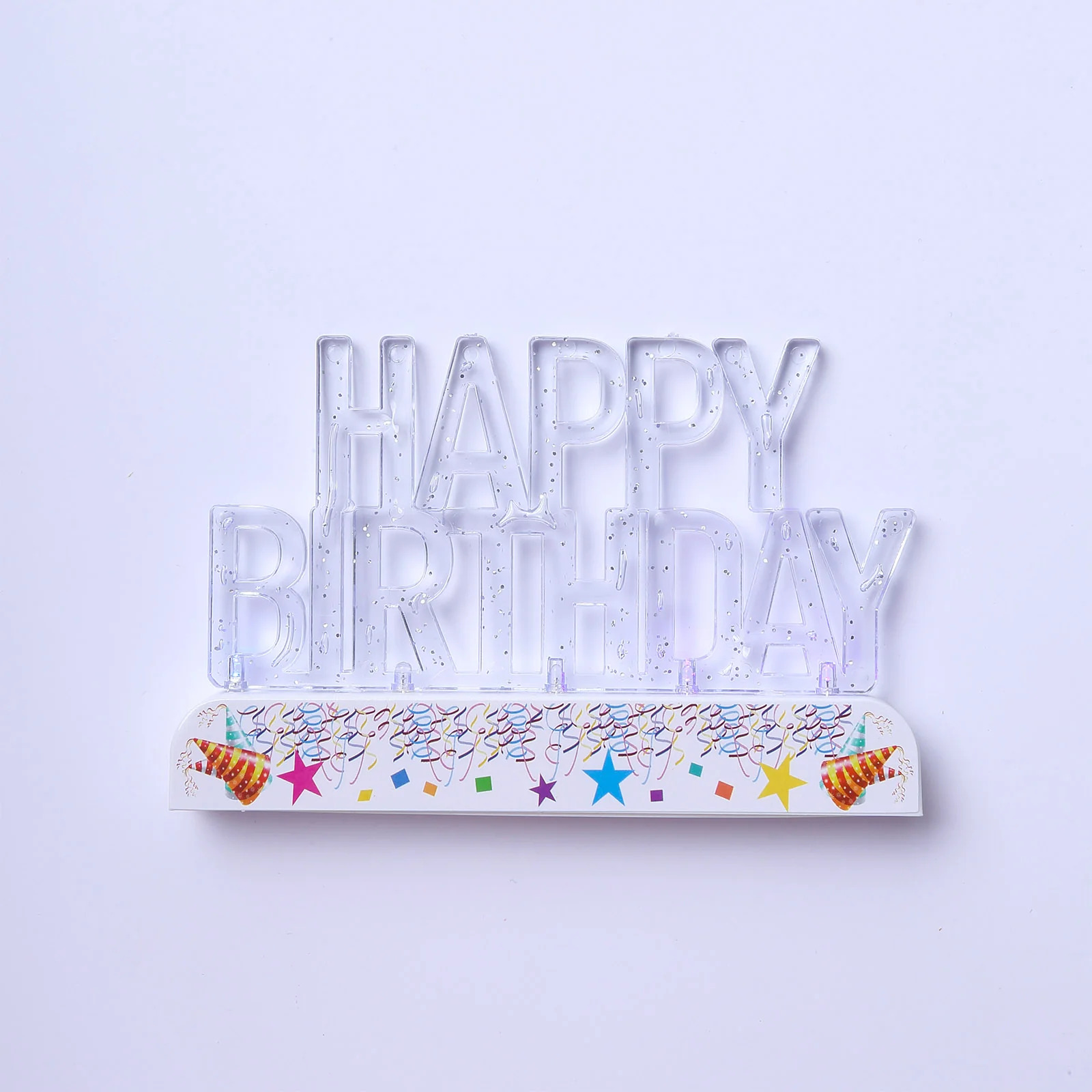 Clear 5x3 in Acrylic Happy Birthday LED CAKE TOPPER