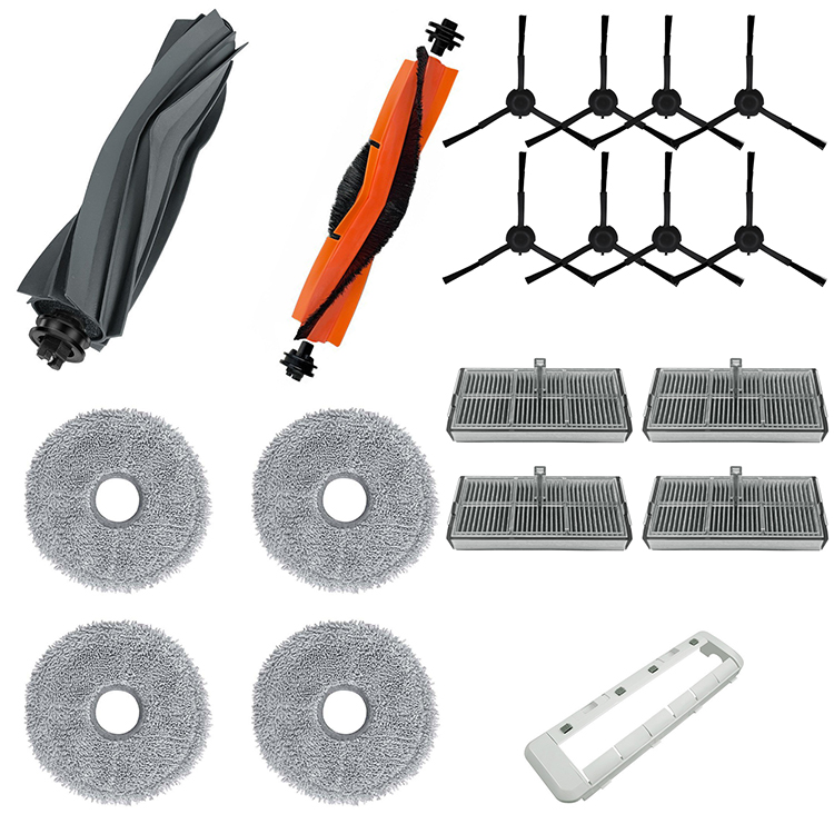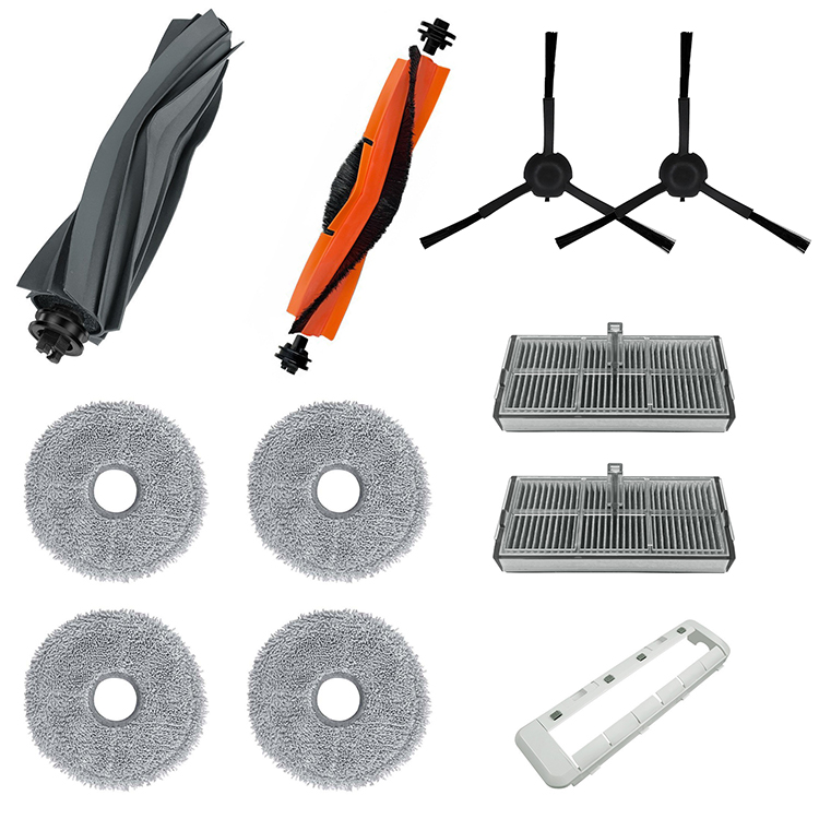 l 1x Gray Rubber Brush + 1x Red Rubber Brush + 8x Black Side Brushes + 4x Filters + 4x Mops + 1x Gray Cover Plate