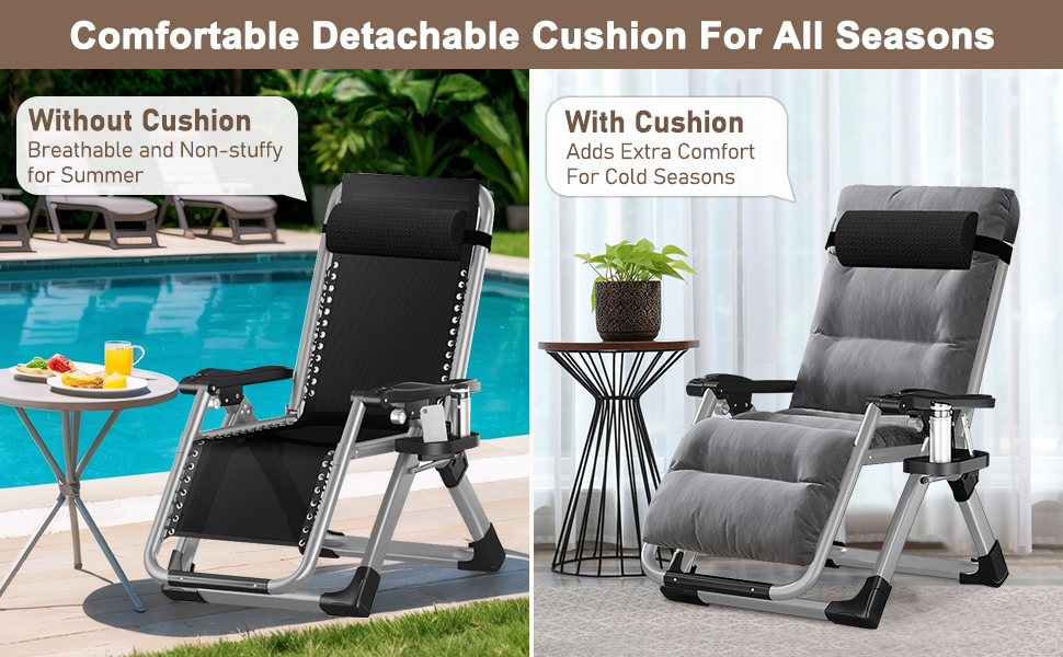 【Removable Soft Pad】 Removable design ensures that you can use the chair all year around. you can remove the soft cushion from the outdoor patio reclining chair during hot summer days