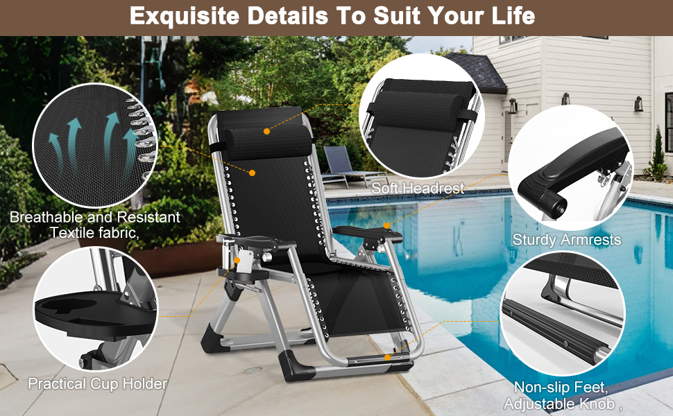 【Customer-Centric Approach】: With your purchase, you'll receive a patio Zero Gravity Chair, installation instructions, and our worry-free 12-month after-sale service. Our friendly customer service team is just a message away on Amazon, ready to answer any questions you may have promptly.