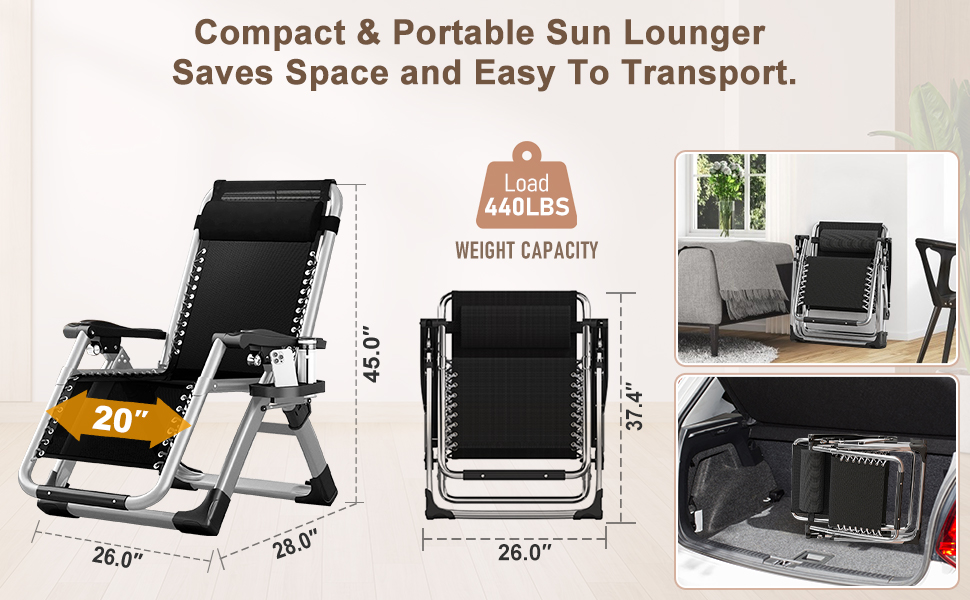 【Versatile Usage】: Enjoy the comfort of this folding Zero Gravity Chair in various settings like the beach, pool, courtyard, balcony, lawn, and more. With no assembly required, it can be effortlessly moved and stored in your car trunk, making it incredibly convenient for any outing.