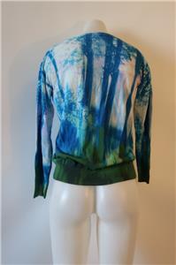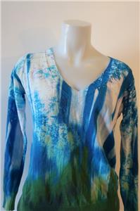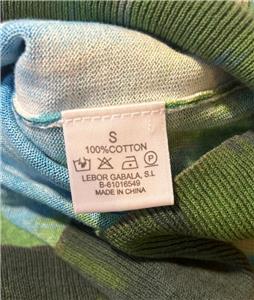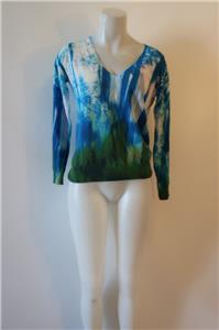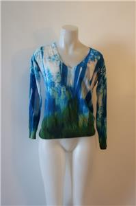 - Womens Lebor Gabala Blue White Multicolor V-Neck Cotton Print Design Sweater S *